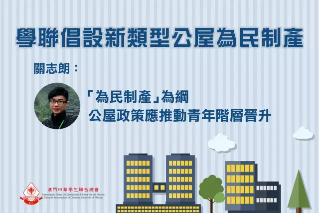 【一周青年簡報】5月24日至6月13日 青年論壇冀完善公屋政策 澳門青年論壇與會者衆 吳子寧 學聯昨舉行二○一五澳門青年論壇,邀請到公屋事務委員吳子寧及相關青年團體代表與會,以“新類型公屋政策的青年思考”為題展開討論。吳子寧認為,目前本澳公屋法例仍努力修改中,如當局推出新類別公屋政策應謹慎處理,宜在原有政策基礎上作出調整。建議政府盡早完善和修改現有公屋制度,放寬條件,讓有需要市民更易“上樓”。 論壇昨日下午三時四十五分在學聯薈青中心舉行,邀得吳子寧、街總青委會主任黃國威、新青協房屋政策關注組副召集人楊文遠、學聯時事關注委員會副主任關志朗主講,由身兼青年事務委員的學聯副理事長方海金主持。 與會者意見指,當下私人樓宇價格高處未算高,與經濟高速增長、外僱人數急增刺激租賃市場等息息相關。且見政府在控制樓宇策略方面力不從心,年輕人大多感到上樓無望、置業夢難圓,因而出現了“有屋冇人住,有人冇屋住”等情況。為此殷切期望政府出台具前瞻性的調控政策,完善有關法律法規。 長遠來看,楊文遠建議政府一旦推出新類別公屋政策,可行才最關鍵。倘當局具條件增加房屋供應量,應更多關顧未符合申請經屋資格、卻又無能力購買私樓的青年人,多為他們這一輩着想,令夾心階層也可上樓,有效優化居住環境。 刊登於2015年5月25日澳門日報 B4 學聯籲學生潔身自愛 關於有中學生涉嫌受僱販毒一事,澳門中華學生聯合總會副理事長方海金表示,同學應潔身自愛,遠離品流複雜之地,以免受匪徒利用犯罪,殆誤終生。 方海金指出,據傳媒報道該同學曾出入夜場,因而結識不知名男子,並在其介紹之下受僱毒販。夜場地方為三教九流人士聚集之所。涉事同學雖已屆成年,仍不應在該種場所逗留,胡亂結識陌生人,甚至答應參與其不法活動。由於該同學已年滿十八歲,可能須負上刑責,影響一生。故此,同學、家長、社會均應對案件引以為鑑。 方海金呼籲同學要自小培養良好的價值觀與道德觀,同時應遠離可疑人士集中之處,切勿輕信陌生人,更不應為利益所吸引而參與犯罪;家長也應與子女加強溝通,了解子女的行蹤與交友狀況,並適時勸導,避免子女成為匪徒目標;社會更應配合宣揚禁毒訊息,與警方合作,杜絕毒品,令下一代免於受害。 刊登於2015年5月29日澳門日報 A3 經濟調整學聯籲裝備自己 面對賭收多月下跌,GDP也錄得明顯跌幅,澳門以博彩業為龍頭所帶動的經濟發展已進入調整期。澳門中華學生聯合總會「澳門基金會─學聯」升學輔導服務中心主任許千里表示,經濟環境轉變,政府、青年人都應該有所準備。 許千里認為,博彩業的調整是經濟發展的必然定律,未來博彩業將會以更穩定的方式持續發展。在經濟轉變期間,政府除了應密切注意博彩相關行業的變動外,也要同時鼓勵不同行業的發展,以開展經濟適度多元。據消息反映,由於近期澳門市場的轉變和外來因素的影響,過去不少從事博彩業相關行業的青年現已離開了原有的工作崗位或轉投其他行業,對此特區政府應多加留意,並要研究博彩業調整對周邊行業所帶來的變化。 許千里續指,因應博彩業的調整,未來博企所需求的人力資源質素要求將有所提高,短期內相關的職位空缺會減少,所以青年人更應趁早好好裝備自己,同時也可注意澳門其他行業的人資需求,考慮不同的路向。他認為相對鄰近地區而言,澳門青年有較佳的機會入讀大專院校,無論地區和學科的選擇都是比較廣闊,因此在策劃個人的發展時,首先要選好自己的興趣,多向師長或專業人士諮詢,並因應澳門的實際環境,做好較全面的思考;也可向不同的社會團體諮詢意見,在經濟環境變化中做好準備。 刊登於2015年6月2日市民日報 P02 學生形象大使誕十強 由澳門中華學生聯合總會—澳門學界常設活動委員會主辦、澳門基金會及教育暨青年局贊助之「慶祝澳門學聯成立六十五周年暨第五屆澳門學生形象大使選拔賽—複賽」已於五月三十日假柏蕙活動中心舉行。十名參賽者脫穎而出,順利晉身七月十八日假旅遊塔會展娛樂中心舉辦的決賽。 複賽共有二十名來自十三間澳門中學的學生參加,活動分為三部份:第一部份為自我介紹及才藝表演,參賽者以各種新穎的方式展示自己,讓評判們留下了深刻印象;第二部份將參賽者平分為四組,每位參賽者需利用由大會提供的物品,去形容同組的另一名參賽者,考驗他們的急智、創意及表達能力。第三部份跟據第一、二部份的評分為參賽者進行排名,首八名參賽者直接進入決賽,再由評審選出五名決賽後補,通過現場觀眾一人一票選出最後兩名,共十名參賽者進入決賽。 晉身決賽的十強分別為(排名不分先後):郭健浩(廣大中學)、袁莉鈺(嘉諾撒聖心中學)、江羨施及歐陽綺萍(嘉諾撒聖心英文中學)、李山林及杜家俊(聖若瑟教區中學第五校)、陳佳慶及駱日輝(鏡平學校)、黃冠霖及黃子晴(培正中學)。◇ 刊登於2015年6月3日華僑報第二張第三版 學聯倡推年限公屋助民安居 近年樓價高企,令即使收入不低的年輕人,都難以單靠自身能力累積首期置業,使他們感到力不從心,望樓輕嘆,繼而將目標轉移至經濟房屋,但經屋供應量少,無法滿足大量需求,最後令年輕人上樓無期,影響人生規劃。學聯時事關注委員會副主任關志朗期望政府應運用新思維,在未來研究新類型公共房屋時著重