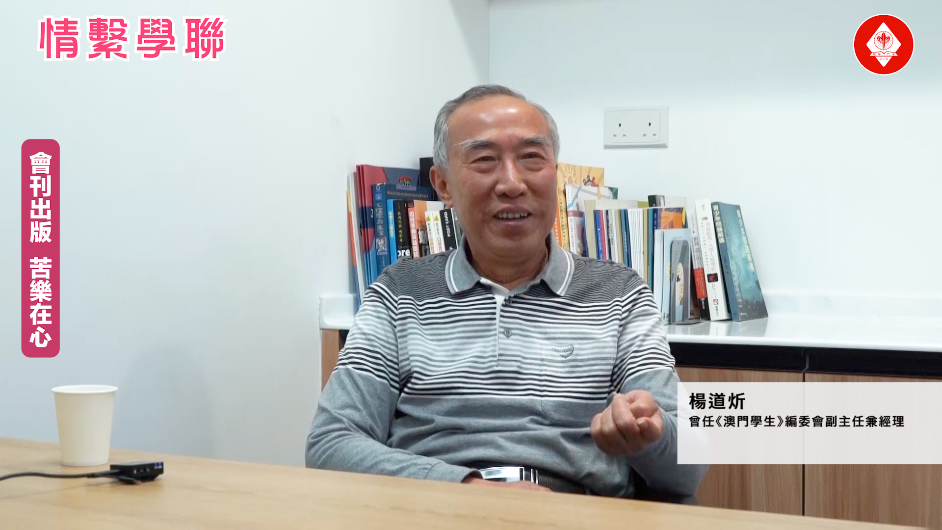 今集推出的是楊道炘先生:「會刊出版 苦樂在心」。楊道炘,曾任東南學校教導主任、嶺南中學總務主任、廣大中學教導主任;澳門廣播電視有限公司中文電視節目總監;星光書店執行董事,現任顧問;曾任《澳門學生》編委會副主任兼經理,澳門中華教育會常務理事、宣傳部副部長、《澳門教育》副主編,澳門新聞工作者協會常務理事、現任顧問,現任澳門文化傳媒集團董事、澳門傳媒福利會主席團副主席、澳門出版協會副會長、廣大中學教育協進會理事、東南學校教育促進會理事、澳門廣大中學同學會理事長。以下摘錄自他的受訪內容: