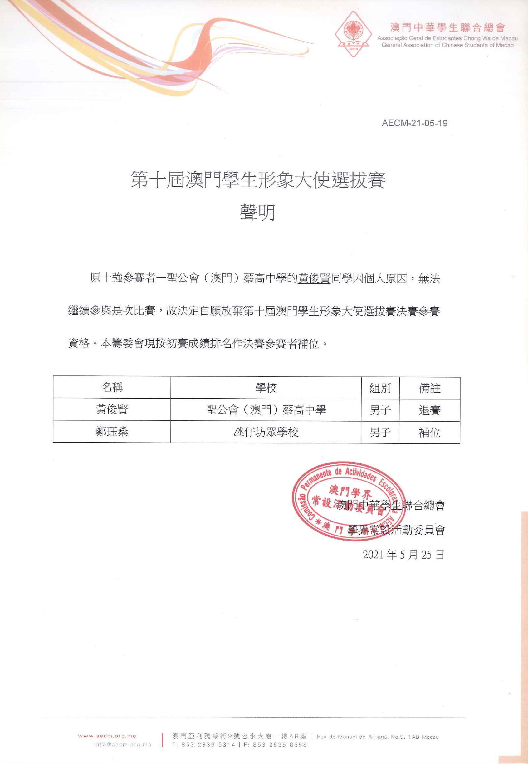 凡欲報名參加第十屆澳門學生形象大使選拔賽的同學,為以示公允,均不可