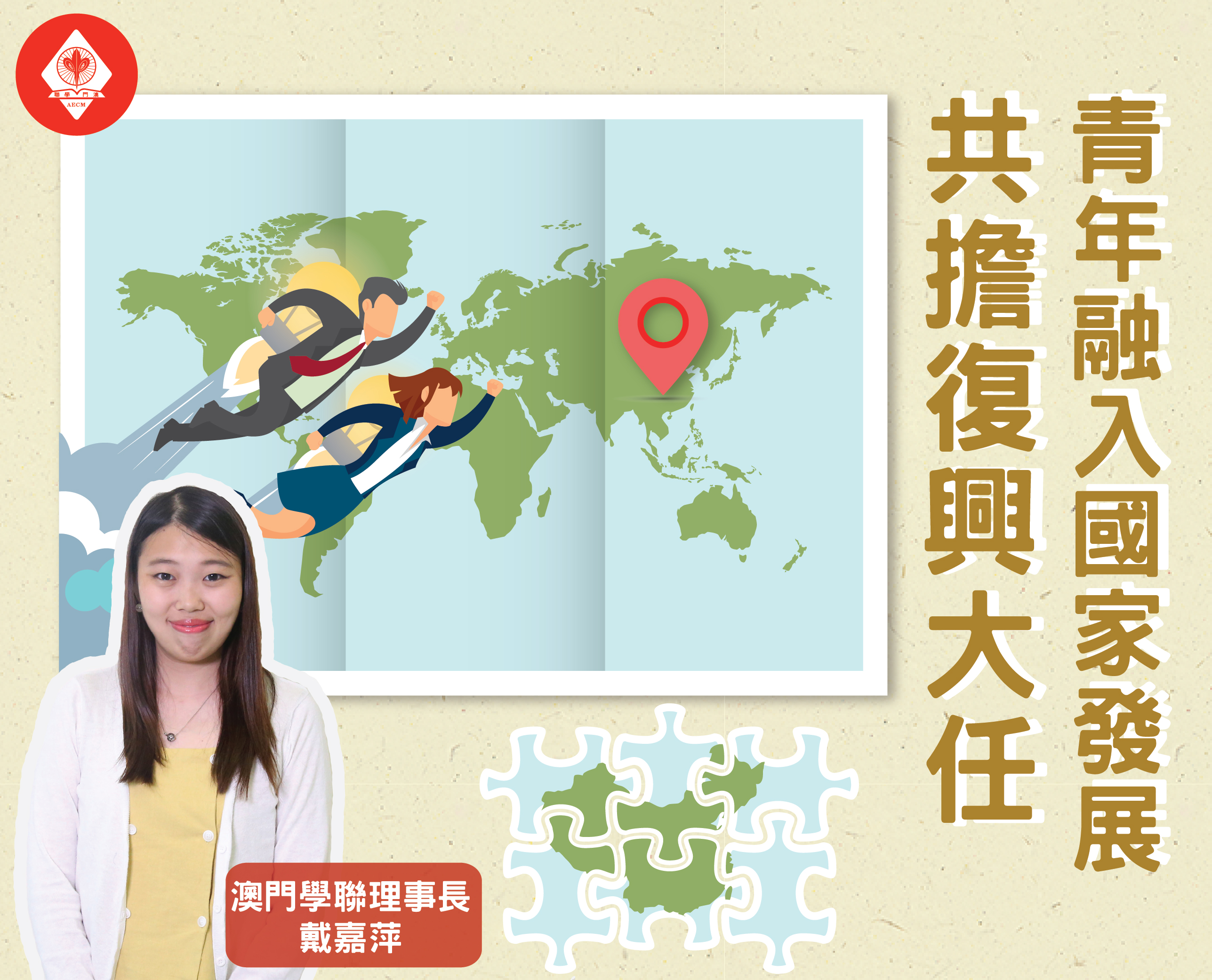 【新聞】裝備自己共擔復興大任 因應王滬寧在與澳區全國大人代表會議間的講話,澳門中華學生聯合總會理事長戴嘉萍表示十分認同。她認為澳門青年世代必須清楚了解自己身為國民的責任與義務,認識國家、《憲法》與《基本法》,傳承愛國愛澳優良傳統,並積極裝備自己,融入國家發展大局之中,為國家在新時代中的進步貢獻力量。 戴嘉萍稱,「一國兩制」是澳門繁榮安定的基石,因此青年世代必須清楚了解其意涵。要了解「一國兩制」,就必須學習《憲法》與《基本法》,才能真切地了解到自己的國民身份、國民責任、國民義務,從而在思想上率先裝備好自己,行動上堅持傳承愛國愛澳優良傳統,加深對中國傳統文化的認知,理解國家新時代的新形勢,從中找出自己可以發揮的位置,為國家與澳門的發展盡一分力。 戴嘉萍續指,正如王滬寧所言,國家未來將會有更多有利澳門發展的政策出台,故此澳門青年應盡早裝備好自己,通過知識與技術的提升,以及對國情和區情的學習,乘上國家惠澳政策的機遇,在國家的發展大局中尋找到自己的發展方向。讓個人的發展成為推動國家民族復興的一分力量,共同擔起民族復興的責任。因此,青年世代應及早發掘自己的潛力,拓展自己的眼界與視野,未來全力投身於「一帶一路」與大灣區規劃之中,與國家一起共同邁向新時代。 ReadMore 【新聞稿】阮舒淇:表演區徵活動助建演藝之都 2026-01-14 【社諮委】阮舒淇:籲設立珠澳跨境救護車「生命綠色通道」機制 2026-01-08 學聯:澳琴大學城拓青年多元發展新空間 2025-12-29 Tweet 微信 Whatsapp 更多會員活動 2025年12月會訊 查看 2025年11月會訊 查看 2025年10月會訊 查看 【Only A.M.】萬聖節餅乾工作坊,一齊嚟整鬼馬曲奇啦! 查看 2025年9月會訊 查看 2025年8月會訊 查看 分類新聞稿, 時事 發佈2018-03-08 微信 Whatsapp 焦點活動 Hot 【抽獎結果】澳門學聯2025會員資料更新 Only A.M. 2025-07-09 【活動推介】2025澳門學聯最佳進步獎學金 2025-04-24 澳門學聯七十五載愛國之路特刊 2025-04-30 【形TV】〖校園狗仔隊〗EP64. 全運會空手道金牌得主:容君灝 澳門中華學生聯合總會