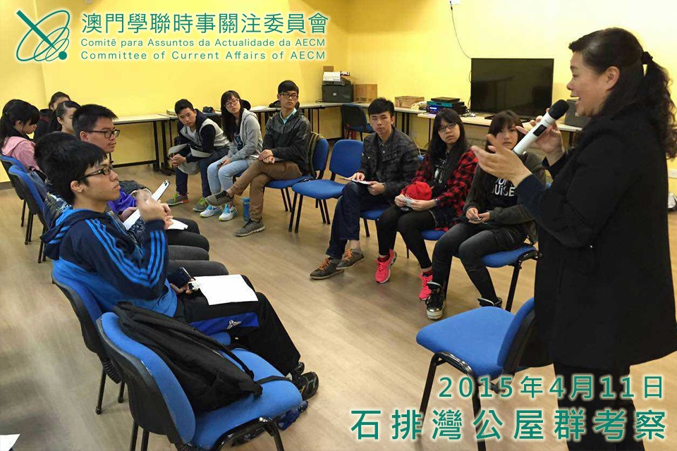 澳門學聯時事關注委員會日前一行18人到石排灣公共房屋群作實地考察,了解石排灣社區的現況。各委員同學認同石排灣公共房屋有助紓緩澳門的住屋需求,建議當局加緊公共設施建設,令石排灣社區盡快成熟,並汲取石排灣規劃的經驗進行新城各區的建設。