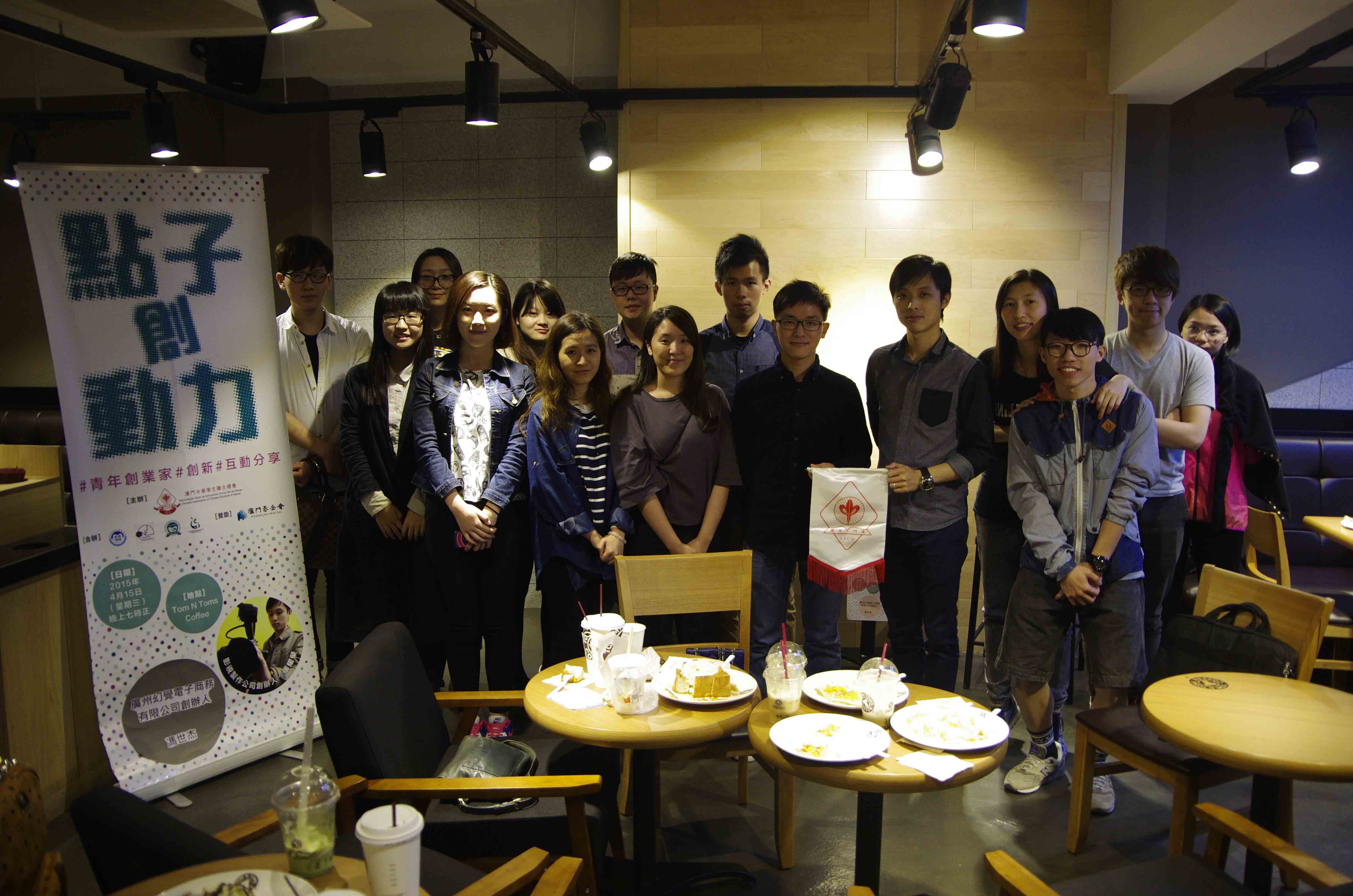 由澳門中華學生聯合總會主辦、澳門基金會贊助的“點子創動力”分享會日前於Tom N Toms coffee舉行,現場一片熱烈交流氣氛。活動邀請兩位青年創業家分享創業經歷及創意來源,分別是幻覺電子商務有限公司創辦人馮世杰和影視製作公司創辦人張耀榮。