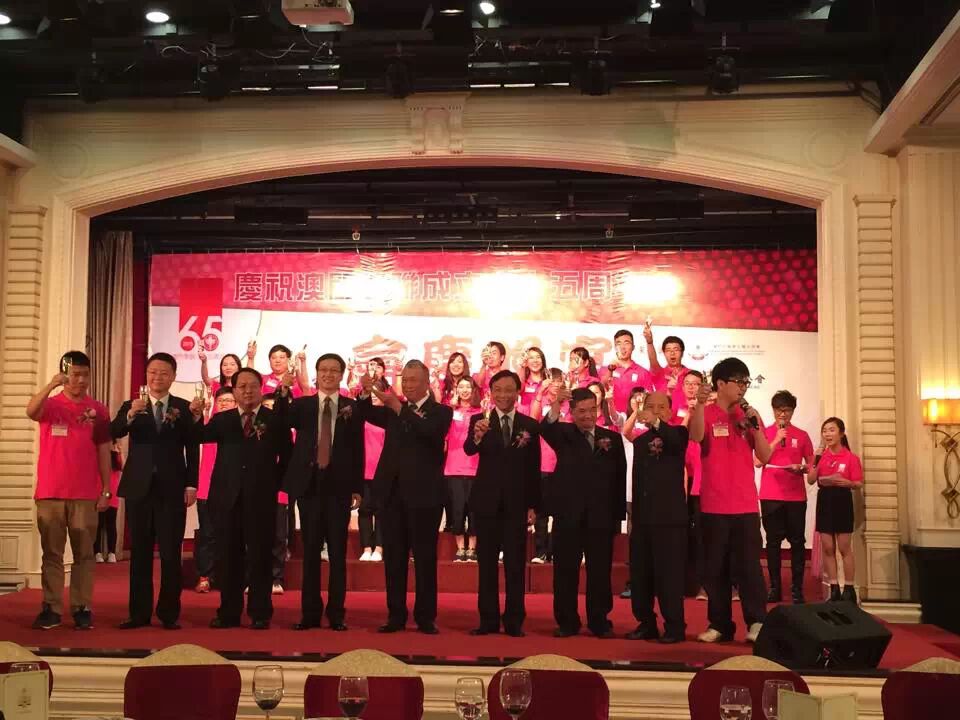 晚宴昨晚七時假萬豪軒酒家舉行,何厚鏵,孫達,潘雲東,譚俊榮,中華全國學生聯合會執行主席劉鎵齊,中聯辦文教部長徐婷、副部長浦海龍,立法會代主席林香生,教青局副局長老柏生,郵政局副局長梁祝艷,海事及水務局代副局長曹賜德,高教辦職務主管黃月冰,澳門基金會行政委員黎振強,澳區全國人大代表劉藝良、李沛霖、姚鴻明,澳區全國政協委員賀定一、吳小麗、尤端陽及各界人士等到賀。