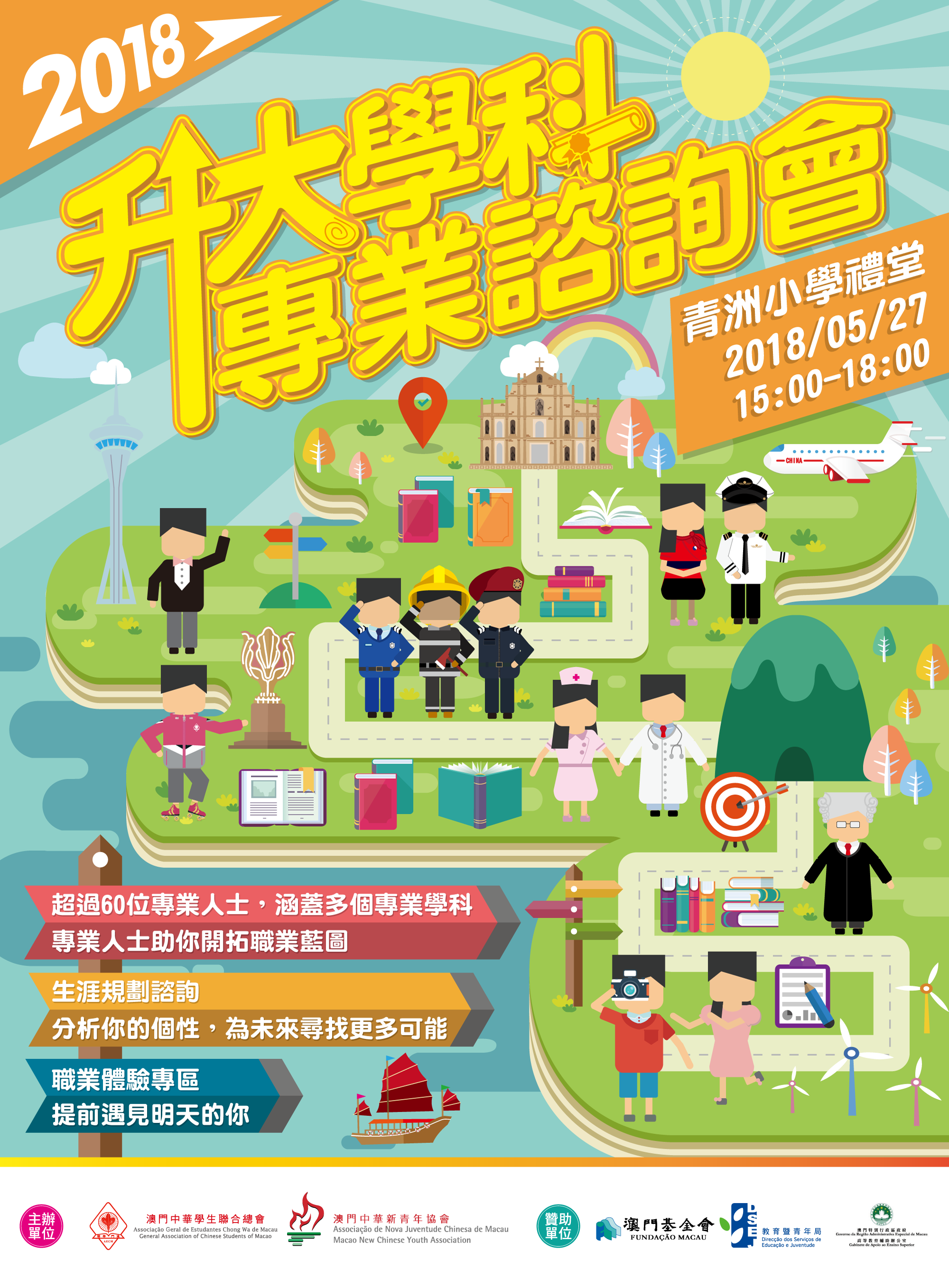 升大前哨戰|做一日大學人 live_tvAPO channel, 升學輔導, 輕電視access_time2018-05-18564 次總觀看 傳說要成為大學生, 就必須要踏上偉大航道—中學, 然後用六年時間, 一一克服各種測驗、考試、報告, 而作為記錄指南針嘅老師, 會沿途指引你前進嘅方向。 當你成功跨越各種挑戰,集齊六張成績文本後, 就可以到達偉大航道嘅終點—大學, 傳說中嘅寶藏,就係嗰度等待你去發掘。 最近,偉大航道嘅其中一個終點島嶼—澳門大學, 邀請咗各位航道挑戰者,體驗一日大學生活, 錯過嘅朋友唔使擔心, 因為我地派出咗挑戰者1號同2號, 記錄咗當日嘅各種精彩畫面,以下係記錄嘅片段。 有一班曾經到達終點, 係唔同航道上各自修練完畢嘅社會人, 臨離開前,留低咗一段說話: 「想要升大的寶藏嗎? 想要的話就去青洲小學拿吧…… 你們5月27日下午3點至6點去找吧! 我把全部的升大資訊都放在那裡了。」 各位偉大航道嘅挑戰者,仲等咩啊? 一齊大叫一聲「我要成為大學生」, 然後搭上8、8A、23、26A、27、28B或者29號巴士, 出發啦! Tweet 微信 Whatsapp 熱門影片 【降低語言能力】「靜雞雞」定係「靜靜雞」靜D? - 24 次本週觀看 《情繫學聯》第三十九集 戴嘉萍 - 24 次本週觀看 《情繫學聯》第十四集 蘇振輝 - 23 次本週觀看 保送面試篇:你的缺點是甚麼?丨矛盾同學會 - 21 次本週觀看 《情繫學聯》第二十集 邱庭彪 - 20 次本週觀看 青莘360 焦點活動 Hot 【抽獎結果】澳門學聯2025會員資料更新 Only A.M. 2025-07-09 【活動推介】2025澳門學聯最佳進步獎學金 2025-04-24 澳門學聯七十五載愛國之路特刊 2025-04-30 最新影片 【形TV】〖校園狗仔隊〗EP64. 全運會空手道金牌得主:容君灝 access_time2026-01-14 活水續未來 │ 時事值日生EP42 access_time2026-01-12 消費大獎賞你點睇 │ 時事值日生EP41 access_time 街市新氣象 │ 時事值日生EP40 access_time 橫琴新去處 │ 時事值日生EP39 access_time