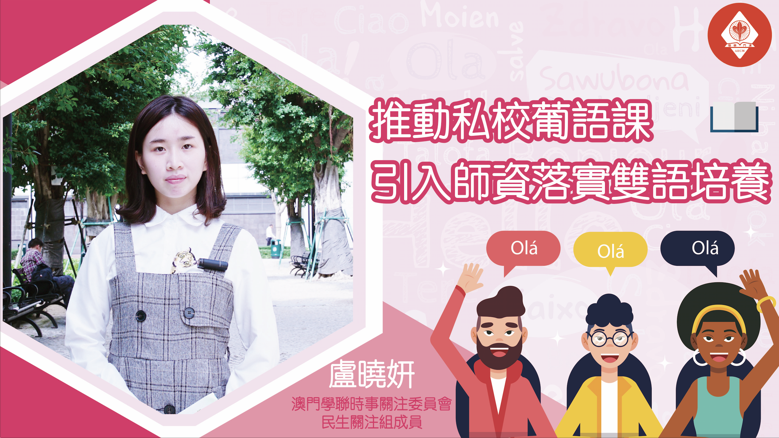 【新聞】盧曉妍:推動私校葡語課,引入師資落實雙語培養 live_tvAPO channel, 輕電視access_time2018-12-03843 次總觀看 特區政府公佈2019財政年度施政報告,在社會文化範疇方面,澳門學聯時事關注委員會民生關注組成員盧曉妍認為,為建成中葡雙語人才培訓基地,應引入優良師資,並於私立學校推行葡語課程,同時設獎勵計劃吸入澳門學生加入葡語學習。 盧曉妍稱,自己本身是學習葡語的學生,故此對中葡雙語人才培訓基地政策特別關注。然而,在施政報告中,有關政策的具體內容不多,以調整課程方式推動政策亦只限於公立學校。她認為,澳門的非高等教育以私立學校為主,即使學習葡語人數有所增長,在私校未有普及葡語教育的情況下,葡語推廣的成果依然會受限。故此,建議可在私立學校推行正規的葡語課程,及早讓學生了解葡語學習的前景,亦可舉辦活動或設獎勵計劃,引起學生的學習興趣。 盧曉妍又表示,她曾在多個不同機構學習葡語,注意到澳門的葡語教育存在一定的師資問題,外籍教師大多不會中文,亦缺少兼通中葡雙語的教師,對於本地華人初學者帶來困難;由此亦折射出中葡雙語人才的重要性。近年特區政府會舉辦中葡論壇,加強中國與葡語國家的交流,當中亦需要大量的中葡雙語人才,而此類人才亦是短缺的。因此,希望特區政府可設法解決師資問題,並在關於建立中葡雙語人才培訓基地的政策提出具體的內容。 此外,澳門學聯亦十分關注性教育的優化、體育設施的規劃等方面。性教育的改善與預防性犯罪關係至深,必須讓青少年及早認識身體的自主性,學會保護自己;澳門體育設施分佈不平均,希望可設定各區體育設施基本需求,從而在設施分佈的規劃時更有計劃。期望特區政府能夠就這些方面提出更多具體措施,進一步改善有關方面的工作。 Tweet 微信 Whatsapp 熱門影片 【降低語言能力】「靜雞雞」定係「靜靜雞」靜D? - 27 次本週觀看 《情繫學聯》第六集 黃楓樺 - 24 次本週觀看 《七十五載學聯情:歐陽偉然》 - 24 次本週觀看 【常識題】男仔鐘意咩類型既女仔? - 23 次本週觀看 《情繫學聯》第三十七集 楊煒軒 - 23 次本週觀看 青莘360 焦點活動 Hot 【抽獎結果】澳門學聯2025會員資料更新 Only A.M. 2025-07-09 【活動推介】2025澳門學聯最佳進步獎學金 2025-04-24 澳門學聯七十五載愛國之路專題特刊 2025-04-30 最新影片 【花絮】導師X學員真心話大公開🎙️ access_time2026-01-07 科創新搖籃 │ 時事值日生EP43 access_time2025-12-31 澳門答卷:一國兩制與澳門前行的故事 access_time2025-12-26 中國抗戰勝利80周年系列訪談──鄧祖基 access_time 中國抗戰勝利80周年系列訪談──姚汝祥 access_time2025-12-05