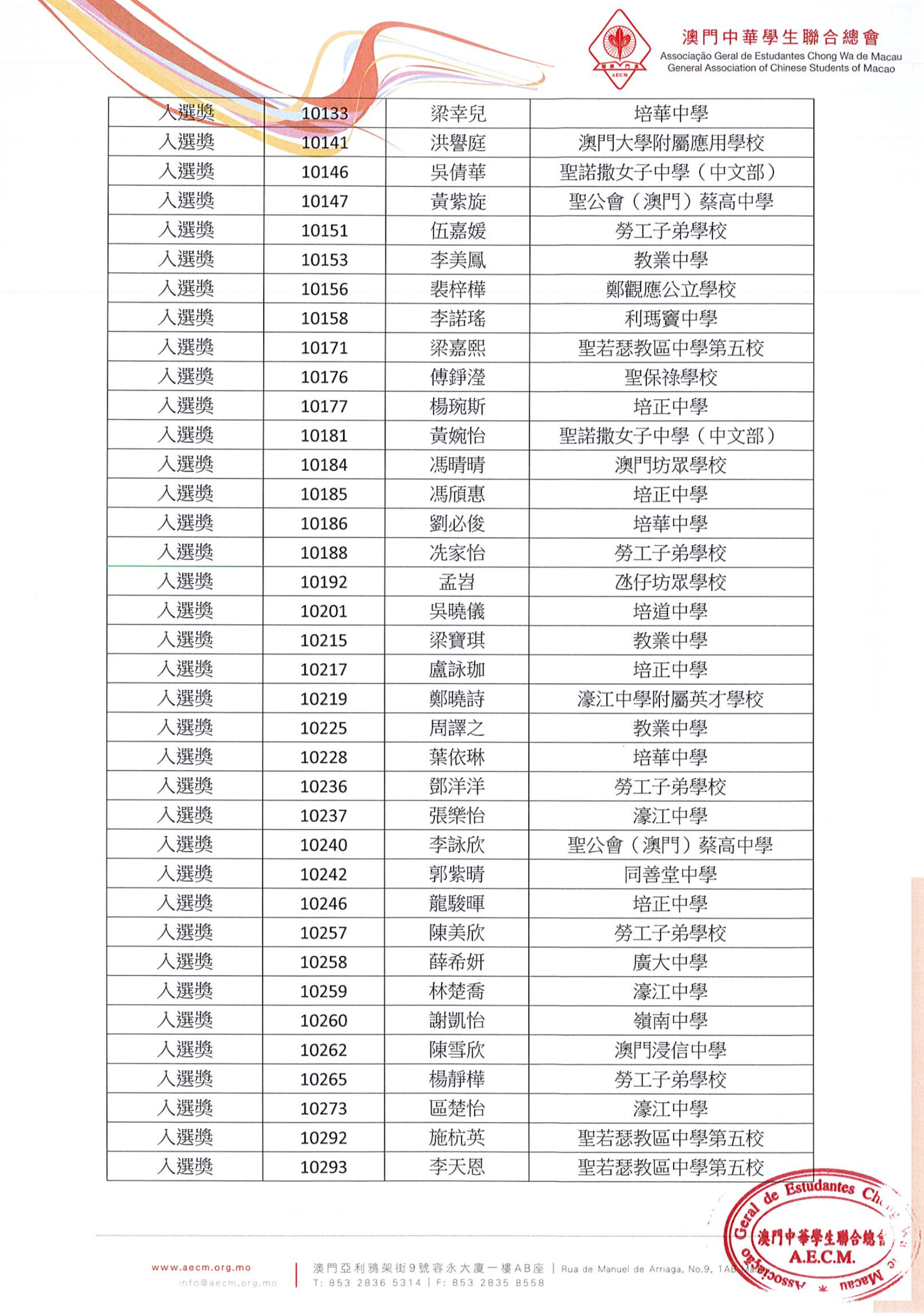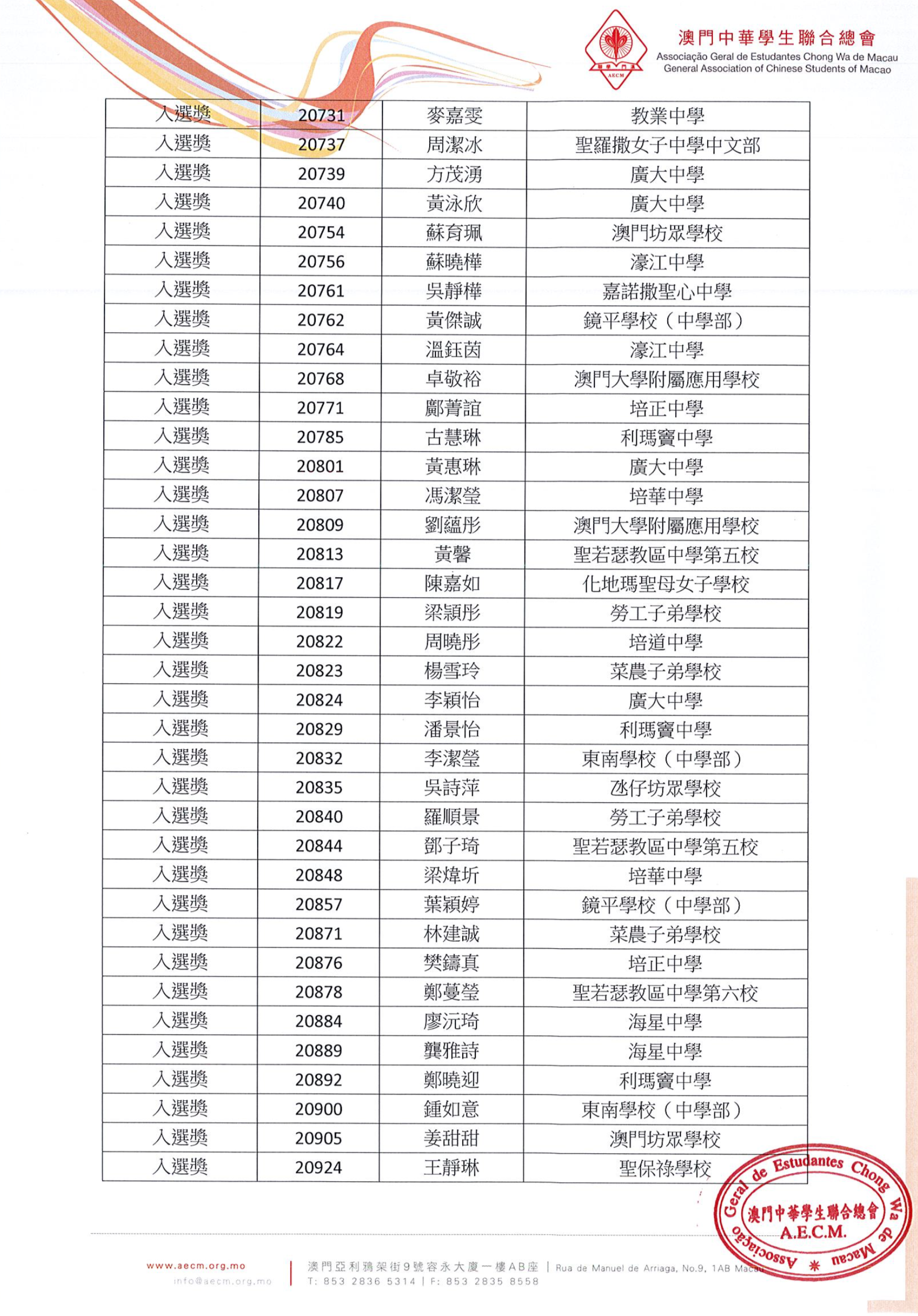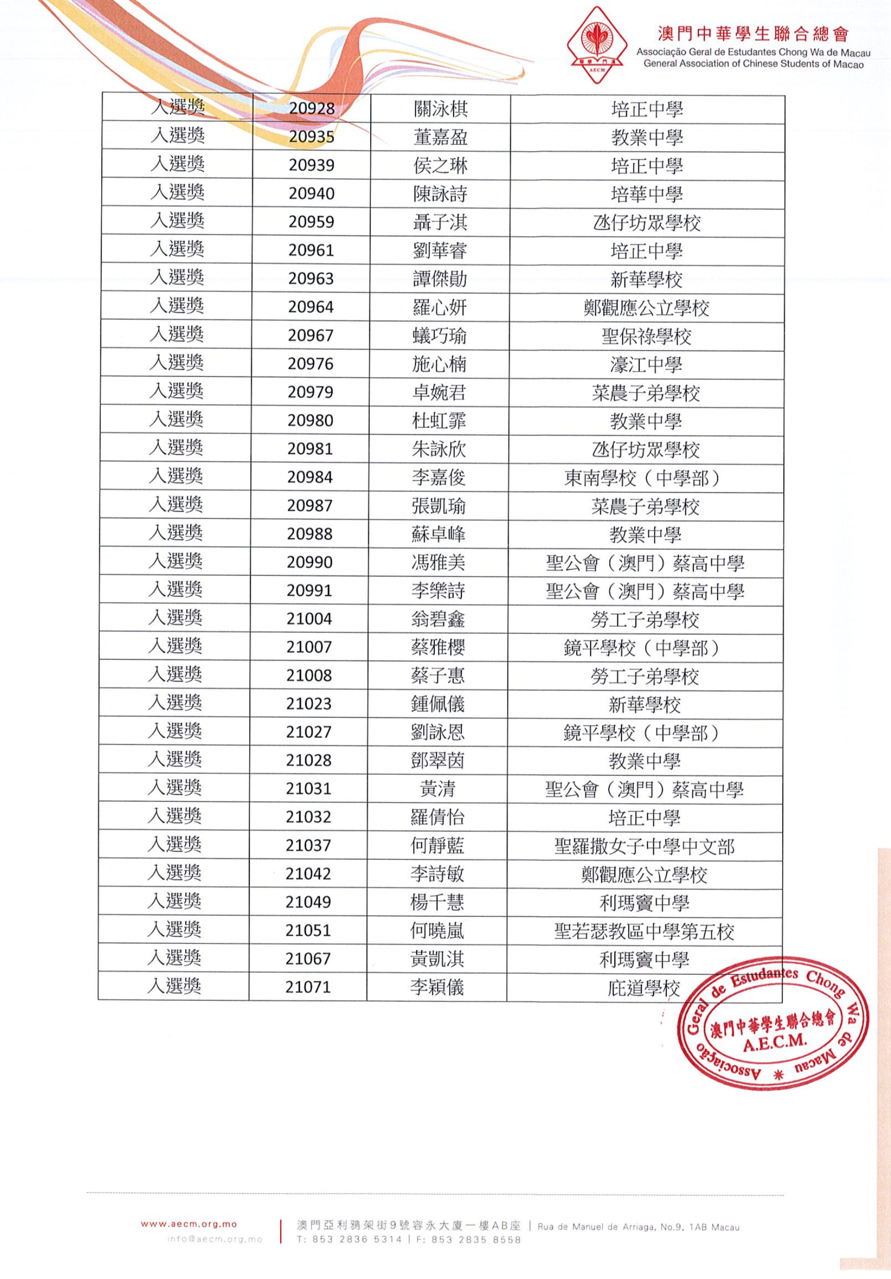 詳情可瀏覽澳門學聯網站www.aecm.org.mo