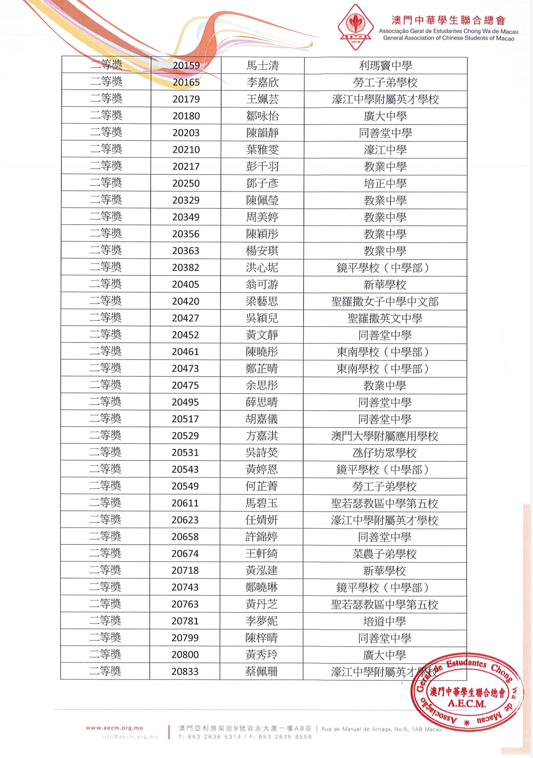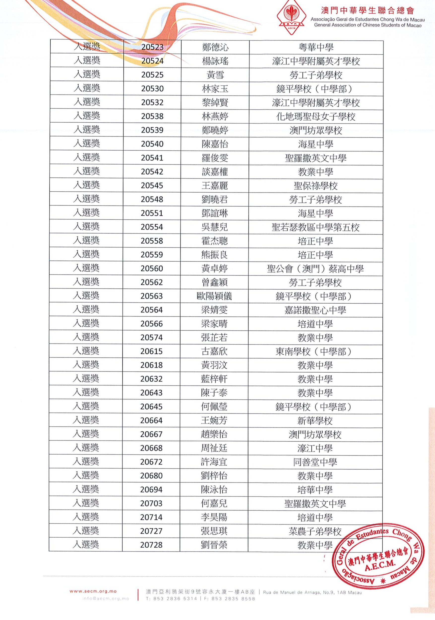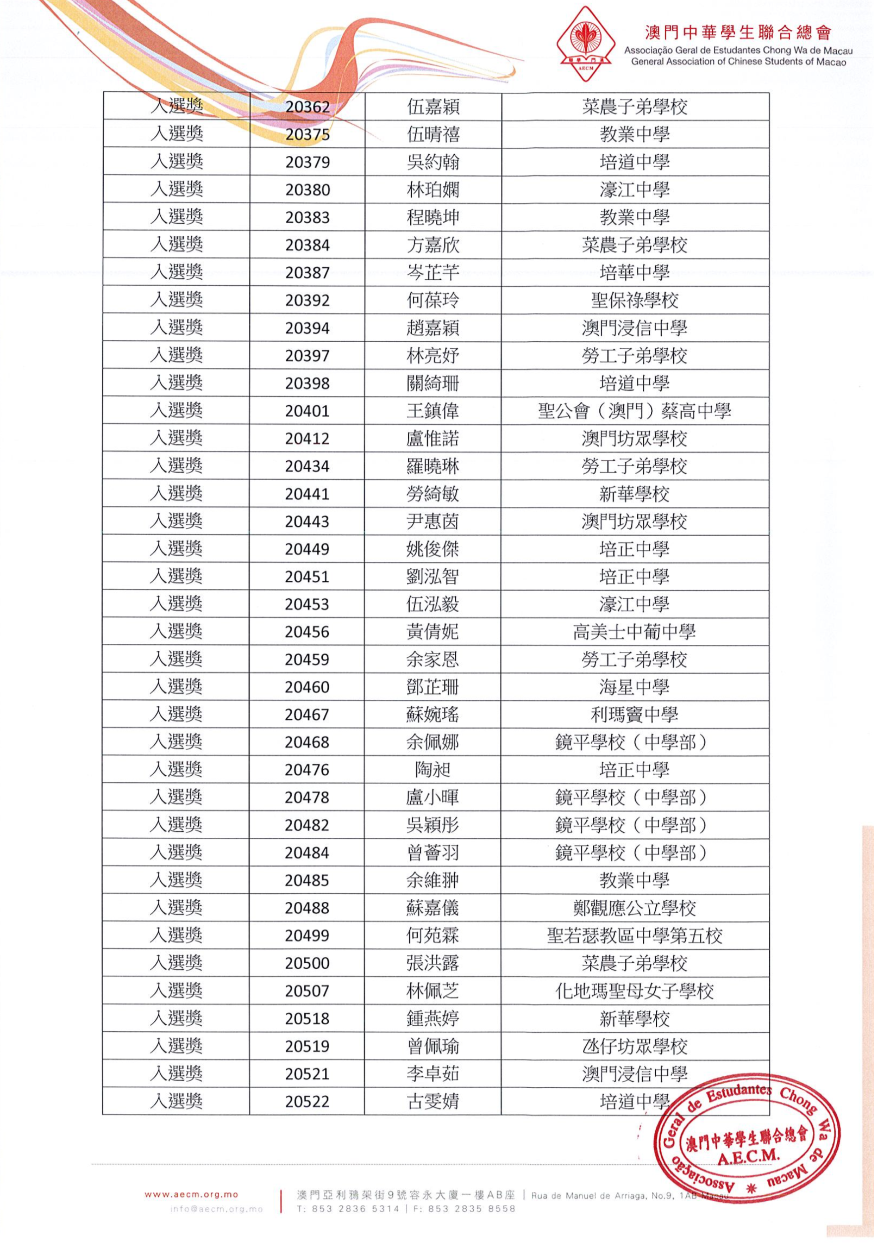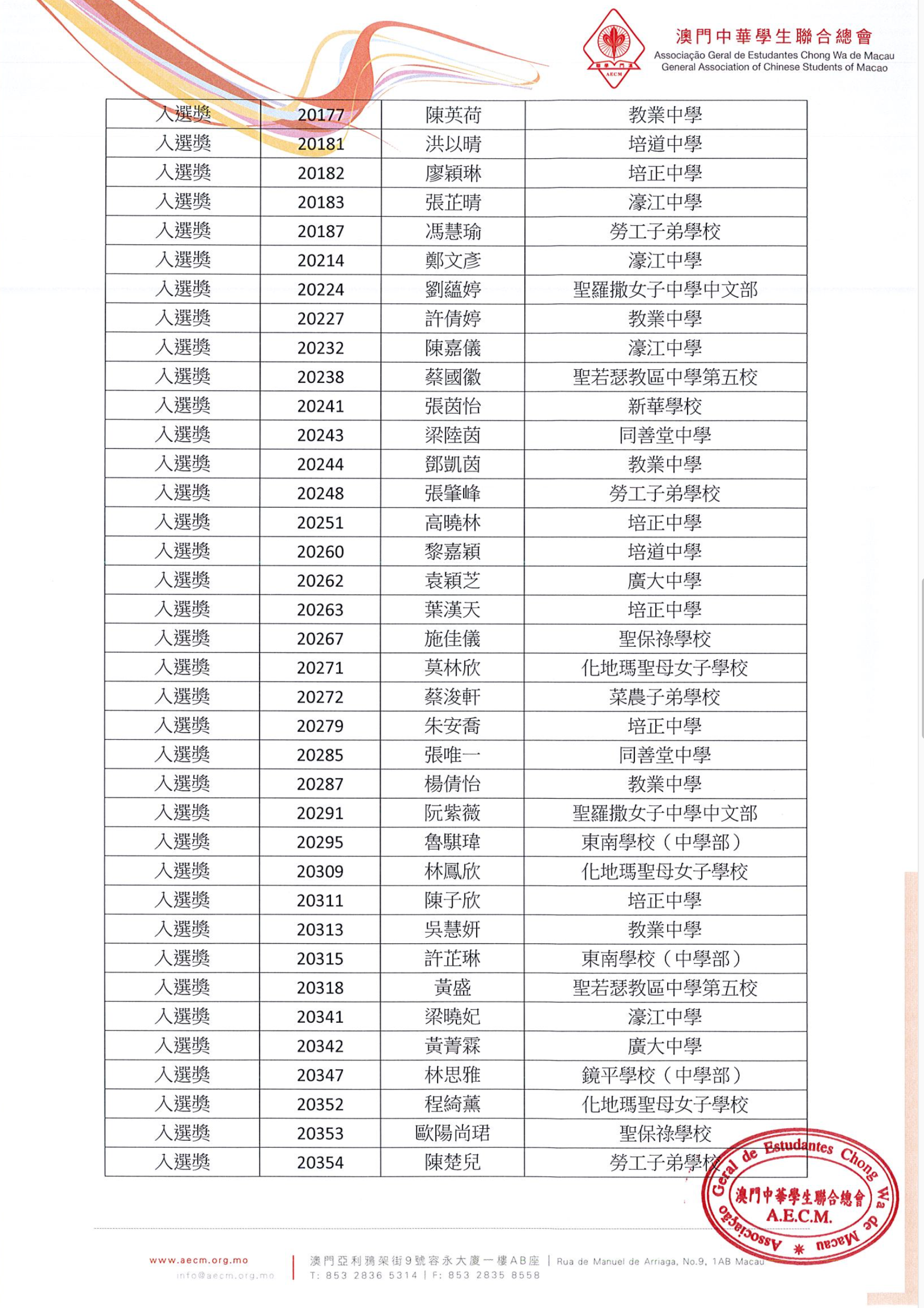 詳情可瀏覽澳門學聯網站www.aecm.org.mo