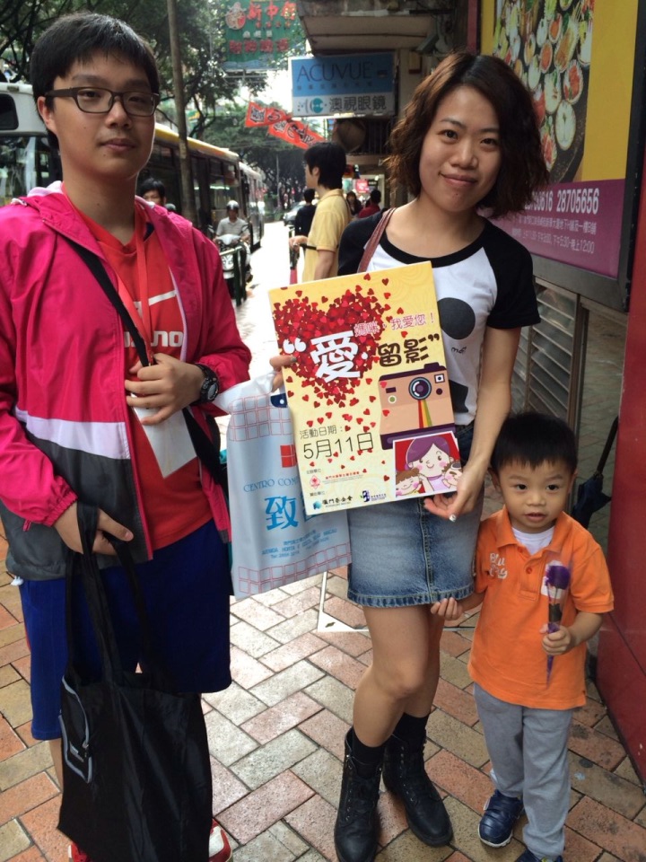 為了讓子女與母親製造出屬於彼此珍貴的回憶,留住這甜蜜的時刻。澳門中華學生聯合總會已於母親節當日早上在高士德及筷子基區舉行“愛‧留影”母親節親子獻愛活動。在活動當天,工作人員利用即影即有相機為她們和子女拍攝照片,並用相紙即場製作心意卡連同香皂花送給在場的母親,讓子女表達自己的心意以及向母親致謝。