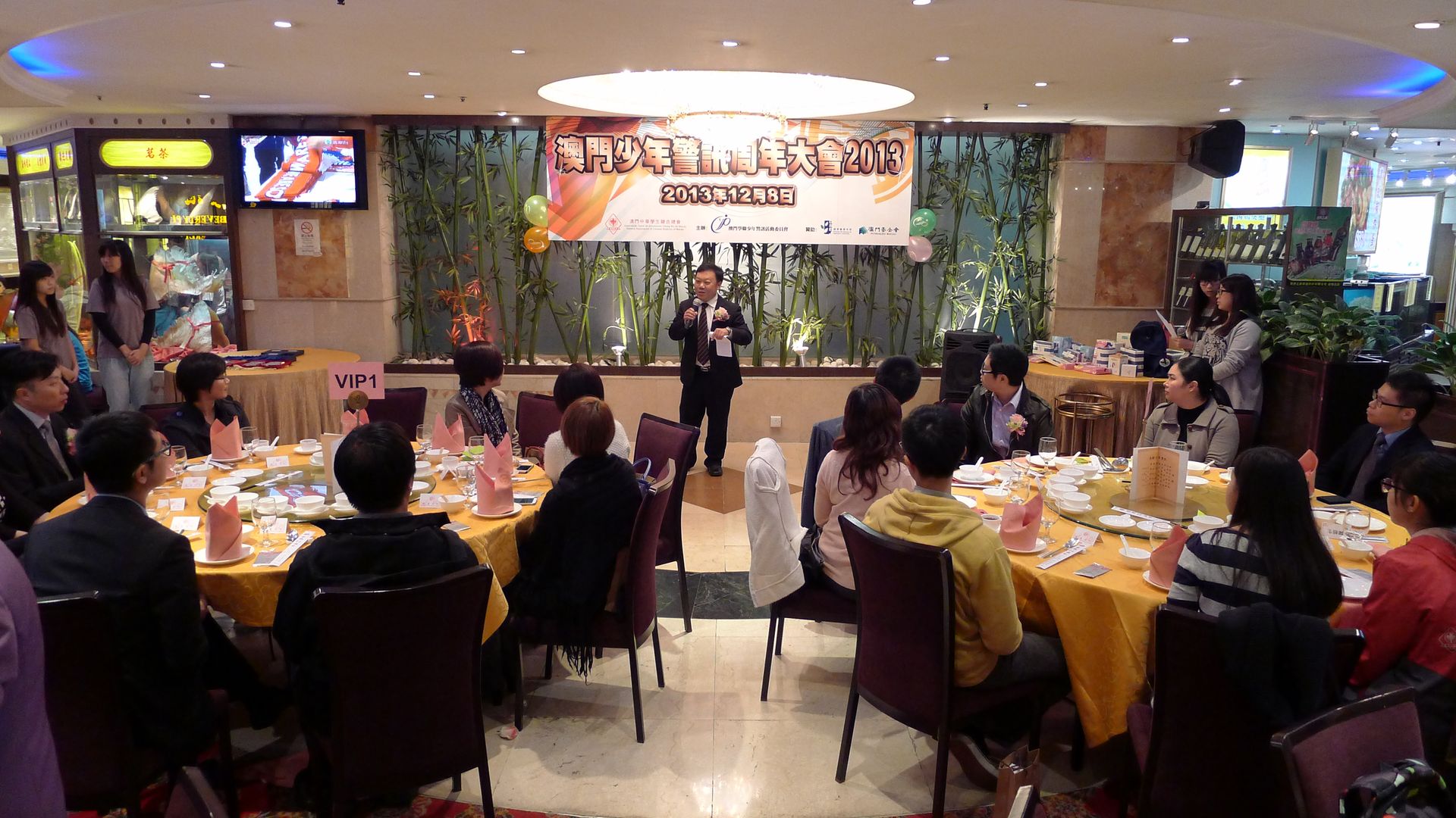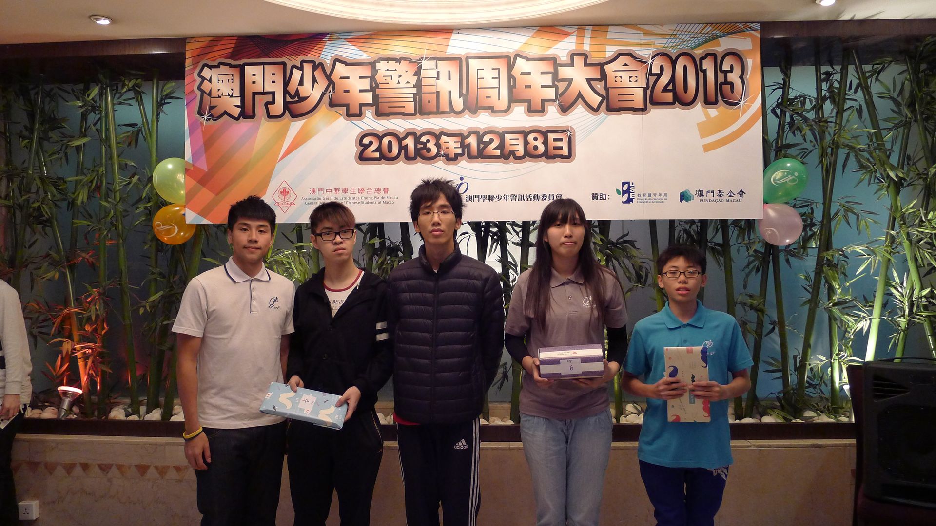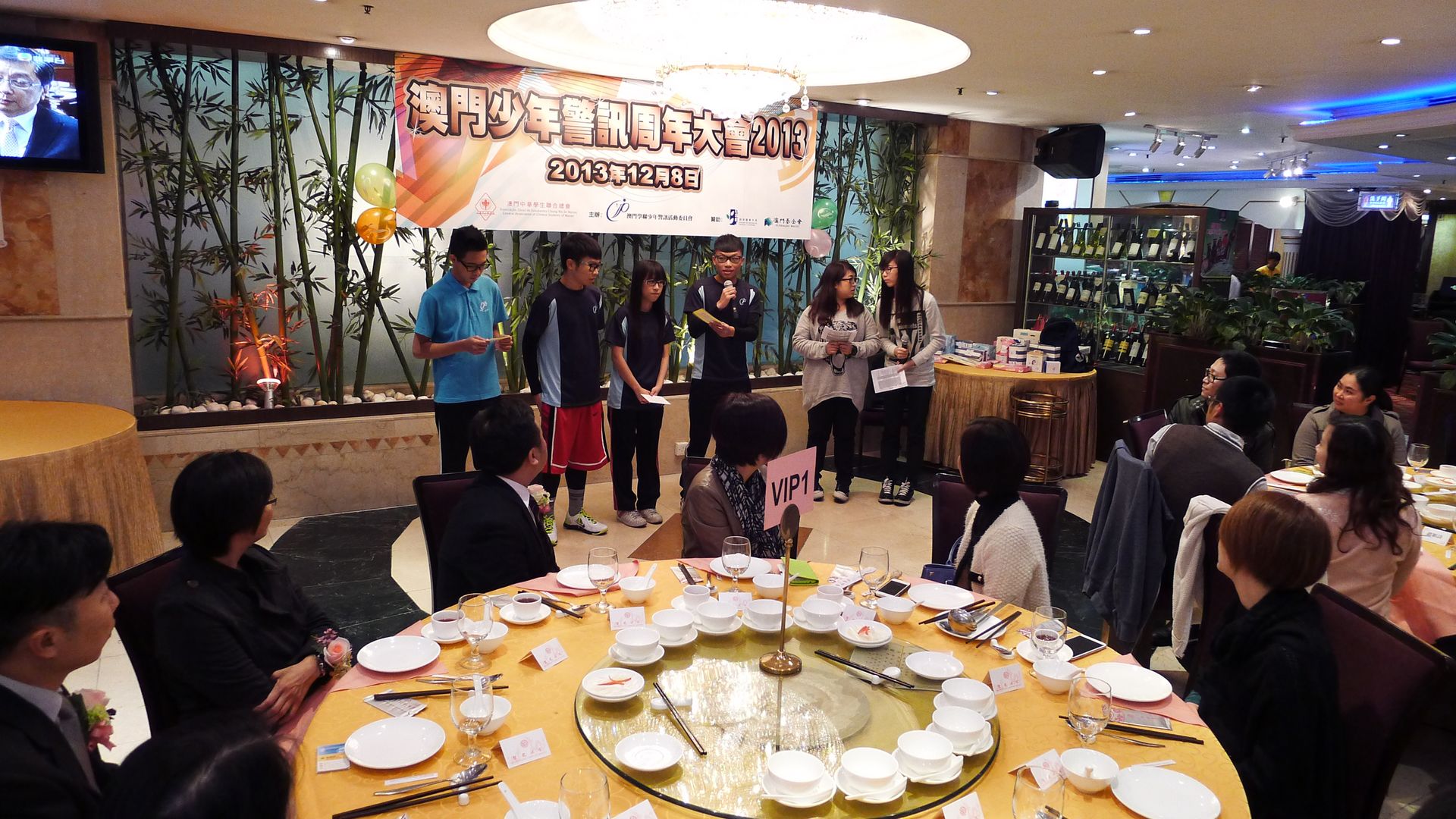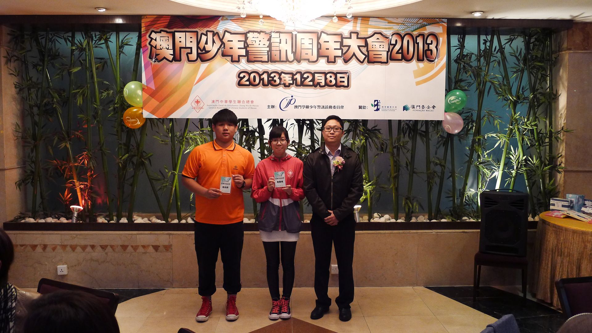 為感謝各界支持,澳門學聯少年警訊活動委員會於日前假聚龍酒家舉辦「周年大會2013」,向受邀嘉賓簡介少訊全年活動情況及成果,同時頒發獎項予本年表現優秀的學員,鼓勵他們繼續努力,邁向美好人生。是次活動獲教育暨青年局及澳門基金會贊助。