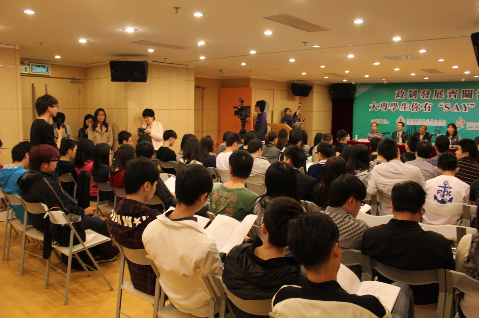 學聯與新青協於日前合辦“政制發展齊關注——大專學生你有SAY”座談會,邀請行政公職局局長朱偉幹、法律改革及國際法事務局局長朱琳琳、行政法務司司長辦公室顧問趙向陽、理工學院一國兩制研究中心主任王禹及法務局代表蔣永恆出席,與本澳大專學生就政制發展作互動交流。