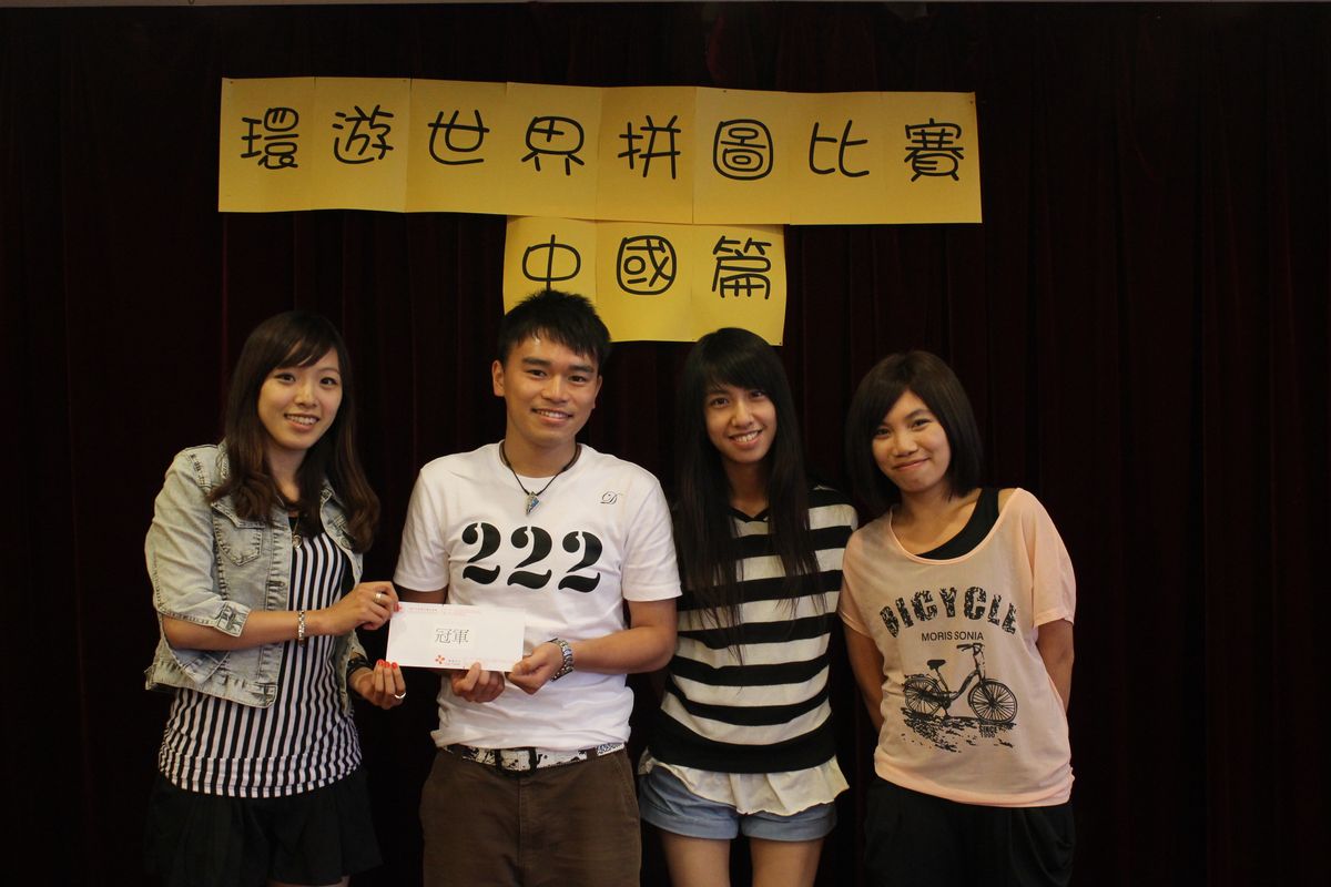 由學聯薈青中心主辦,澳門基金會贊助的“環遊世界拼圖比賽─中國篇”日前於薈青中心進行賽事,參賽者分別來自本澳各中學及大專院校。是次比賽中,各隊參賽者充分發揮團隊精神,經過一個下午的激烈比賽後,來自澳門大學的“麥都膠”隊伍在眾多隊伍中以1小時11分56秒的時間奪得冠軍,亞軍為“LUZIA”,季軍為“K.T.S”,而所有隊伍均在限定的三小時內完成408塊的中國地理拼圖。