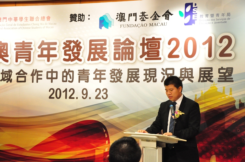澳門學聯主辦,澳門基金會及教青局贊助的“粵港澳青年發展論壇二○一二”昨日舉行,來自全國十四個省市地區的全國學聯及學生代表,以及港澳青年團體代表聚首,共同討論粵港澳區域合作中的青年發展現況與展望,以加強三地青年的交流與友誼,推動粵港澳區域合作的進一步發展,深化三地緊密融合。