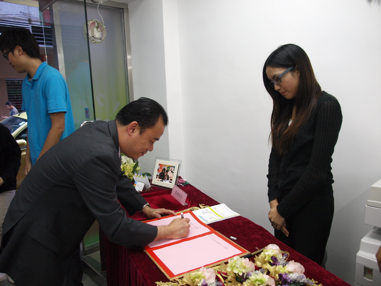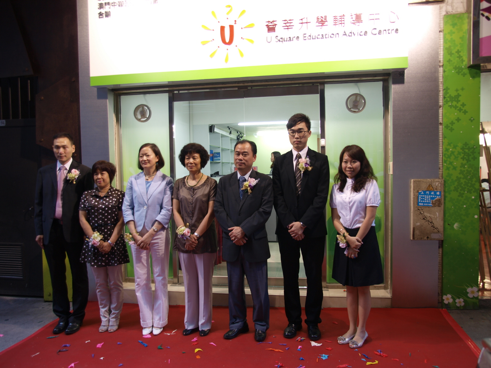 位於高地烏街九十六號地下的薈莘升學輔導中心昨日下午五時揭幕,中聯辦文教部副部長徐婷、澳門基金會行政委員鍾怡、教青局處長陳旭偉、高教辦職務主管郭淑華、學聯理事長邱天、新青協副理事長劉佐春及呂綺穎主持開幕禮。