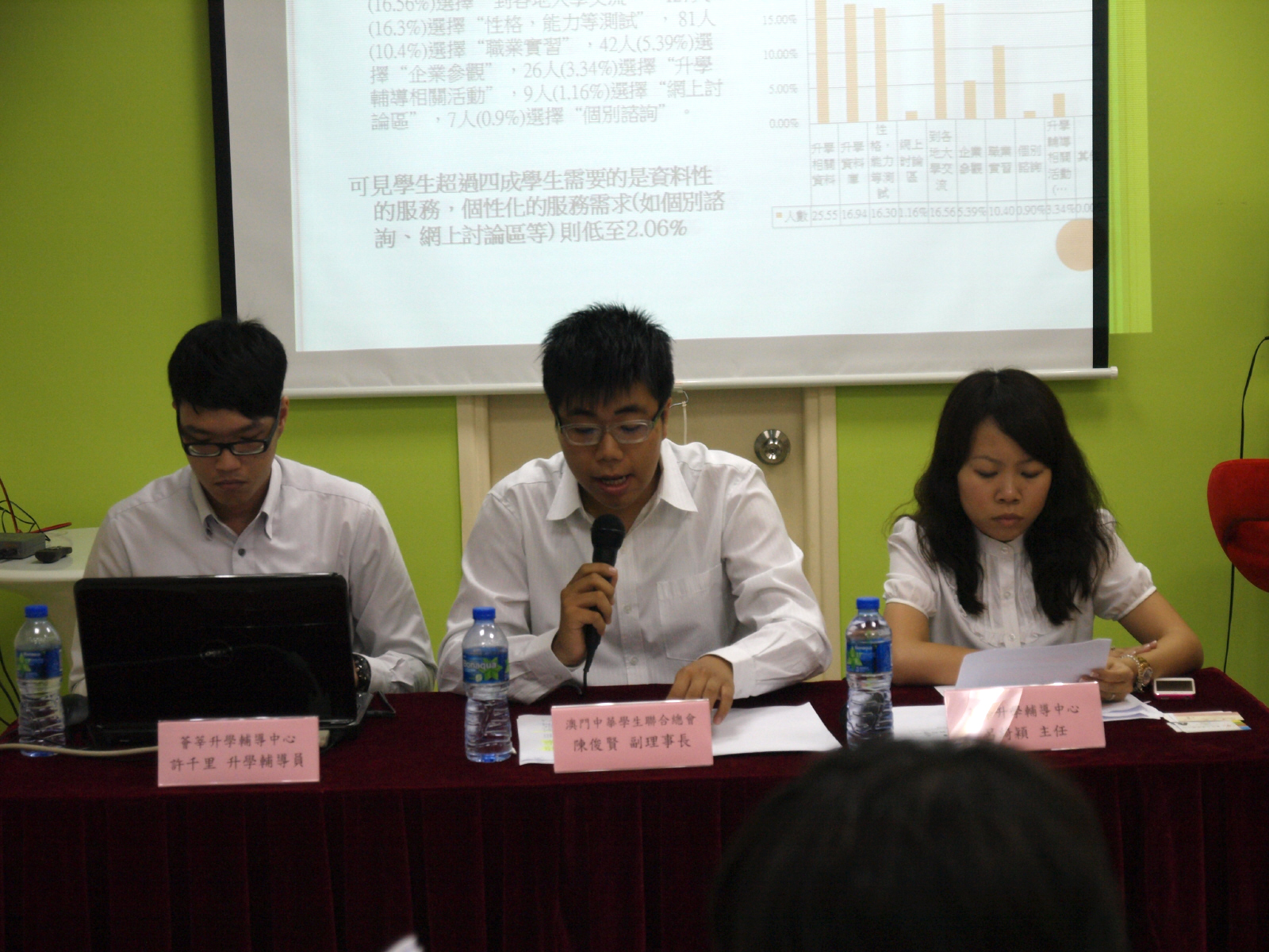學聯與新青協合辦的薈莘升學輔導中心昨日正式投入使用。現時中心有兩名考取國際級生涯規劃諮詢師資格的全職人員,為全澳學子提供詳盡且系統的升學資訊,以及免費輔導服務。服務特色包括個人或團體諮詢,提供性格、興趣及價值觀的自我測評等。中心主任呂綺穎表示,將重視輔導服務品質,務求將升學資訊國際化、系統化,真正解決學生的升學疑問。