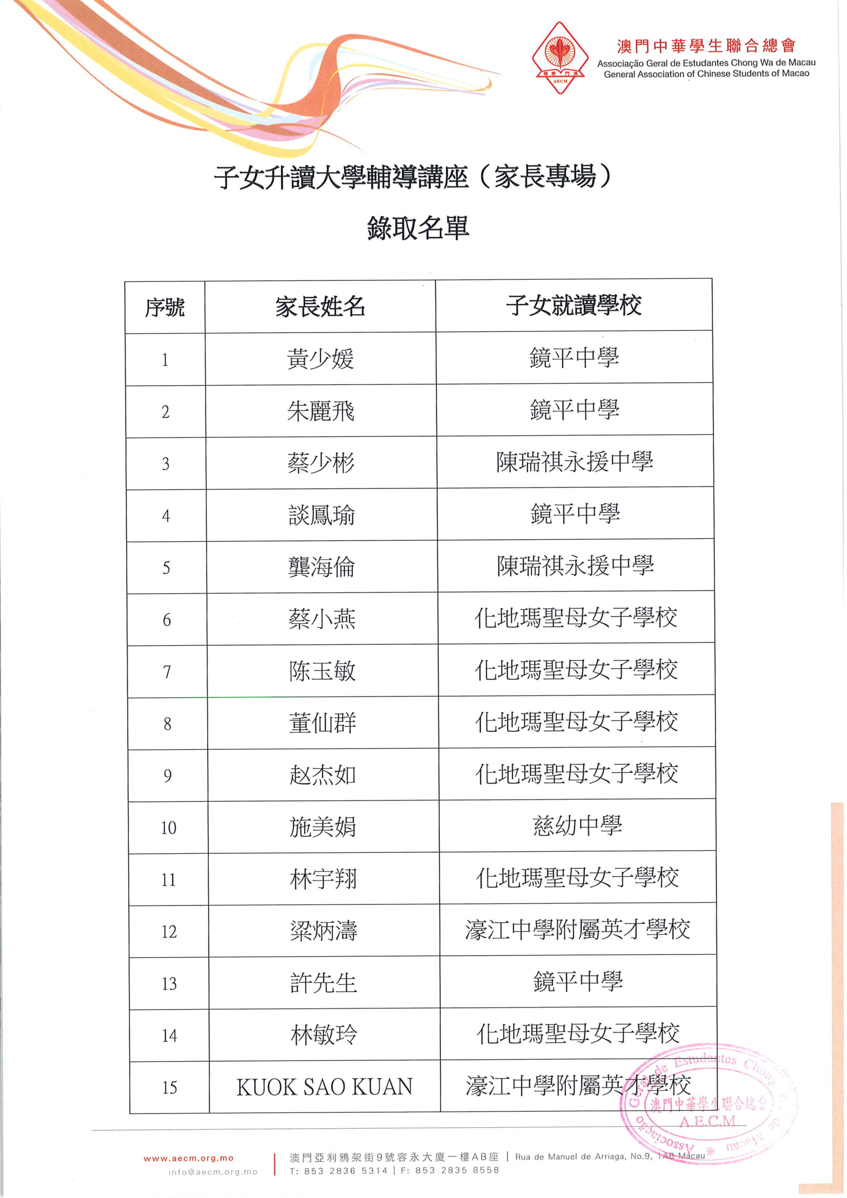 【名單公佈】子女升讀大學輔導講座(家長專場)