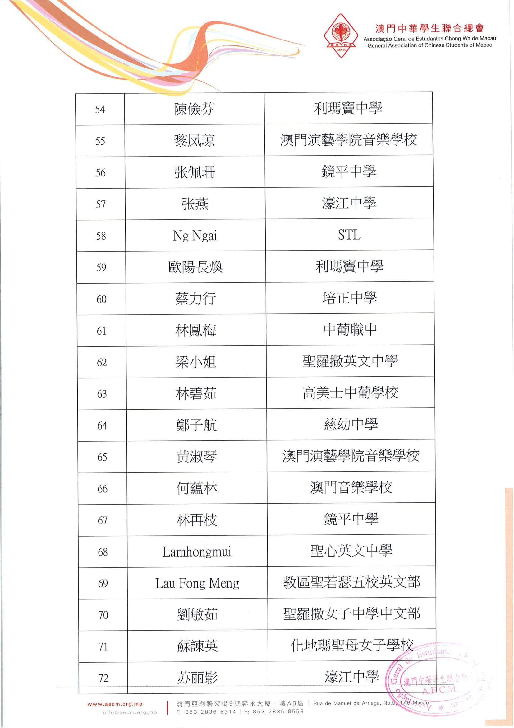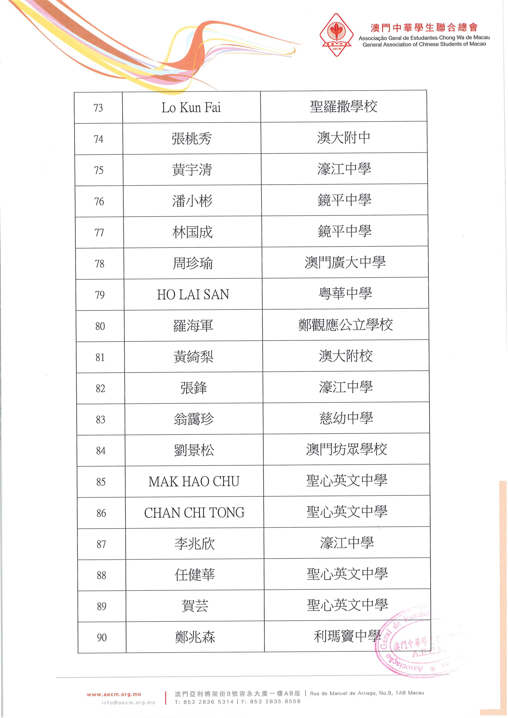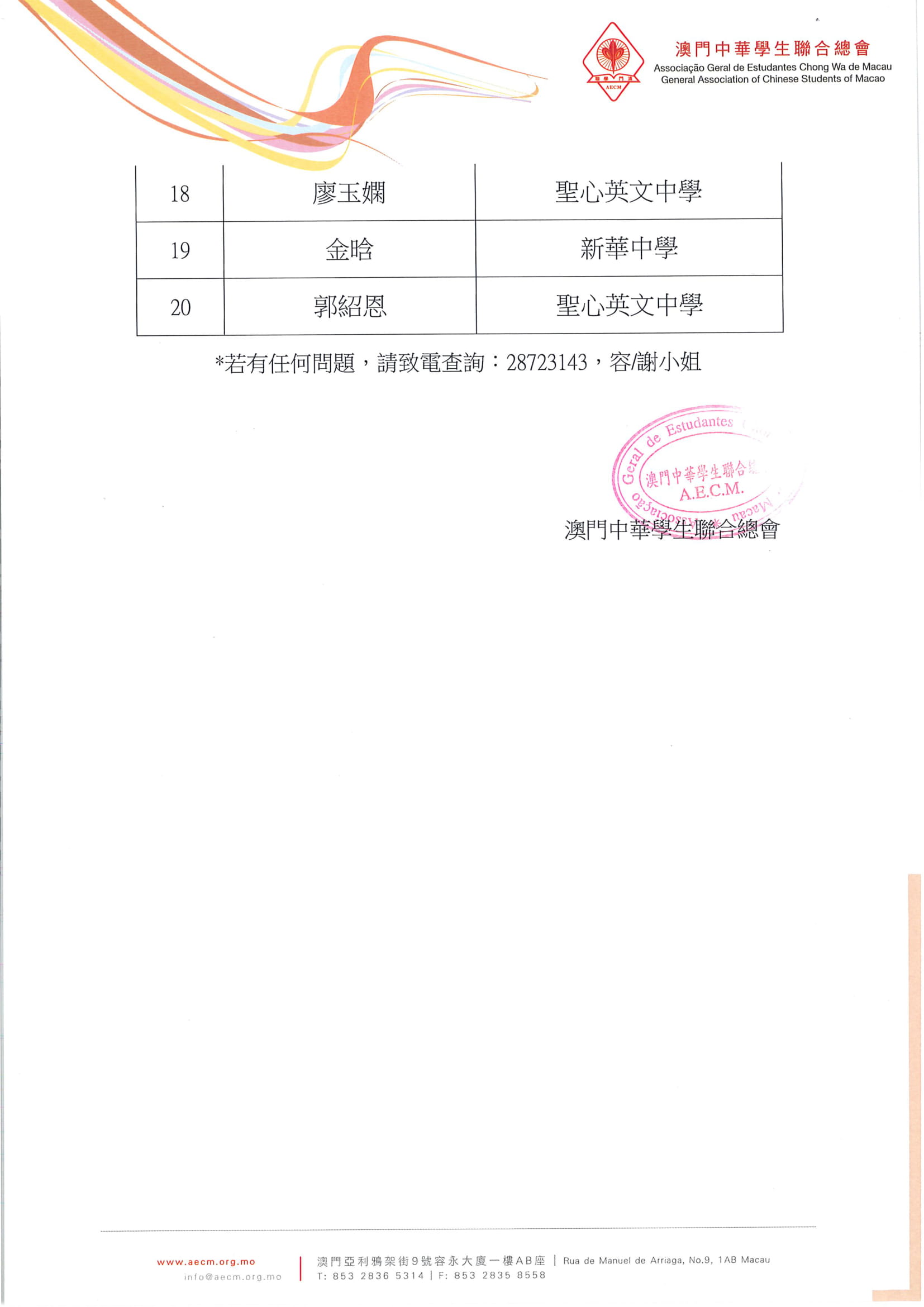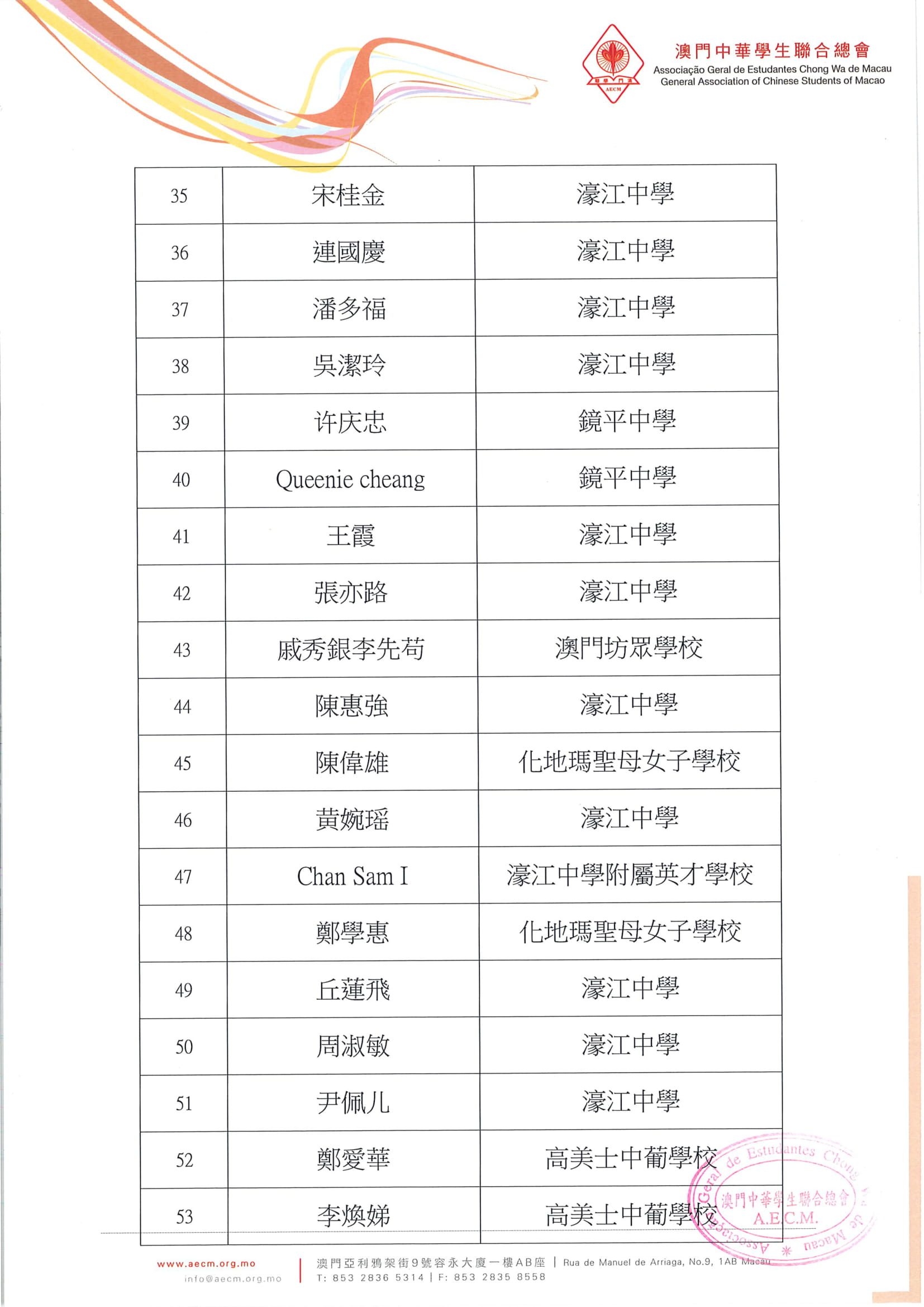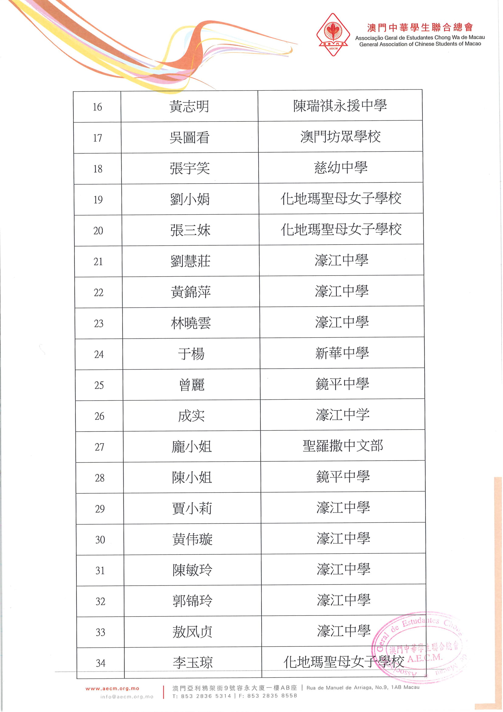 • 1名單公佈