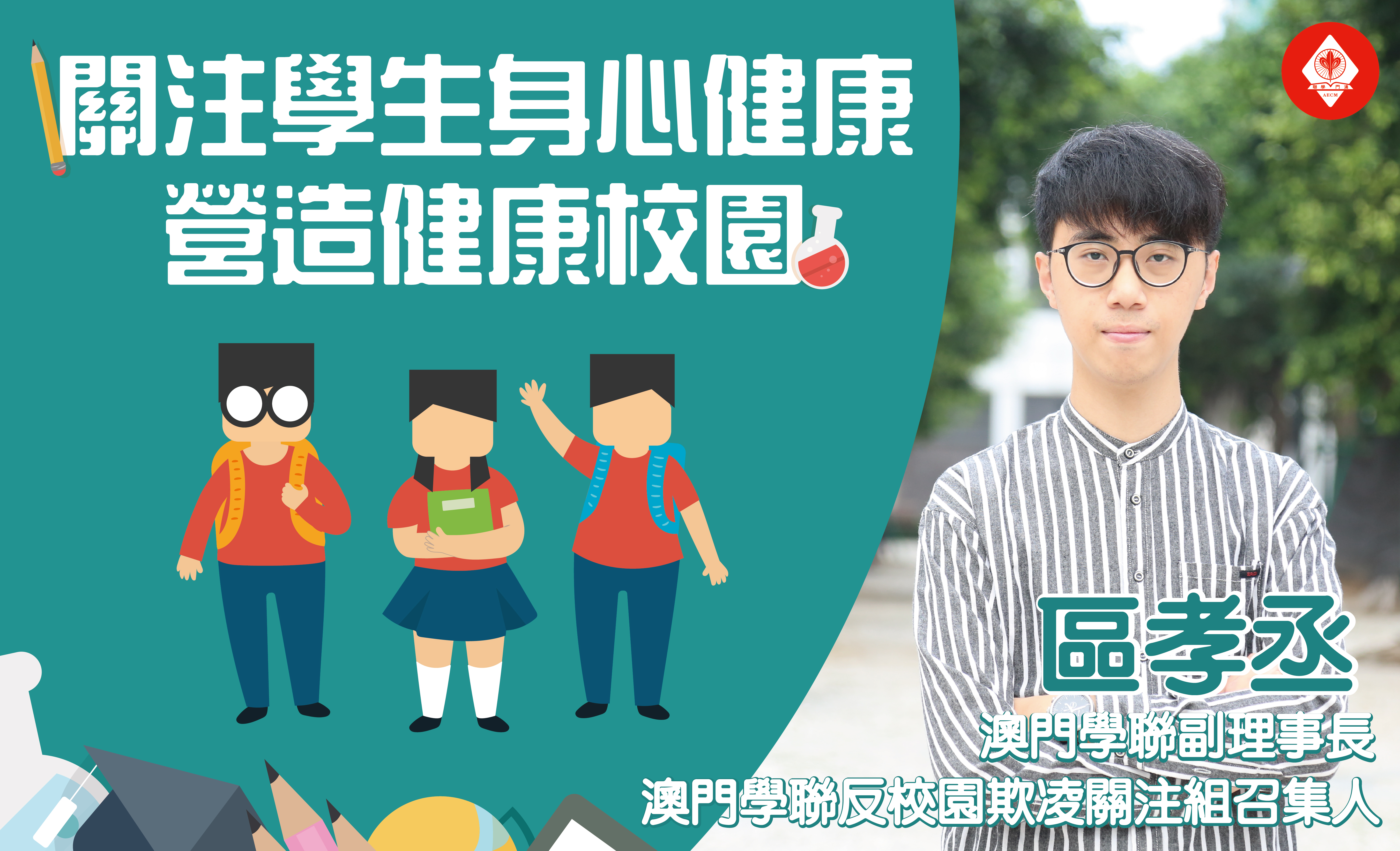 【新聞】學聯:新學年關注學生身心健康 新學年將至,本澳的交通壓力將迎來挑戰,相關當局已準備一系列措施迎接開學日,學聯對此表示歡迎。另外,學聯反校園欺凌關注組召集人區孝丞建議學校在新學年時刻關注學生身心健康,營造健康校園氛圍。 系列措施便利開學 按交通事務局公佈,將在43條巴士路線增加班次,疏導乘客。暑假道路工程也將按時完工並恢復通車,避免對開學後的路面交通造成影響,但亦要時刻留意相關當局發佈的即時交通訊息,及早出門,防止因開學日突增的交通需求而引致的道路擠塞,影響學生準時到校。 關注學生身心健康 另外,區孝丞建議學校在新學年,持續關注學生的身心健康,尤其對新入學的學生或留級生給予更多的支援和關心,避免學生因不適應新環境而造成學習上的壓力,甚至人際關係上的排擠,而衍生校園欺凌問題。 ReadMore 【社諮委】蕭顯華:多措並舉優化巴士乘搭體驗 2026-03-06 【社諮委】阮舒淇:持續打擊電訊詐騙犯罪 2026-03-06 【基層呼聲】學聯新閣凝心聚力 立足澳門 橋接世界 2026-02-25 Tweet 微信 Whatsapp 更多會員活動 2026年4月會訊 查看 【會員福利】2026會員推薦「積」有禮 查看 2026年3月會訊 查看 【會員小貼士】學聯會員登入平台操作5步曲 查看 【學聯會員有咩著數】 查看 【推介】加個好友吧 查看 分類新聞稿, 時事 發佈2019-09-03 微信 Whatsapp 焦點活動 Hot 澳門學聯七十五載愛國之路特刊 2025-04-30 【宣傳片】第二屆澳門青年國際禁毒大使培訓計劃 2026-01-09 【推介】2025/2026升學秘笈 2025-05-09 【形TV】〖校園狗仔隊〗EP64. 全運會空手道金牌得主:容君灝 澳門中華學生聯合總會