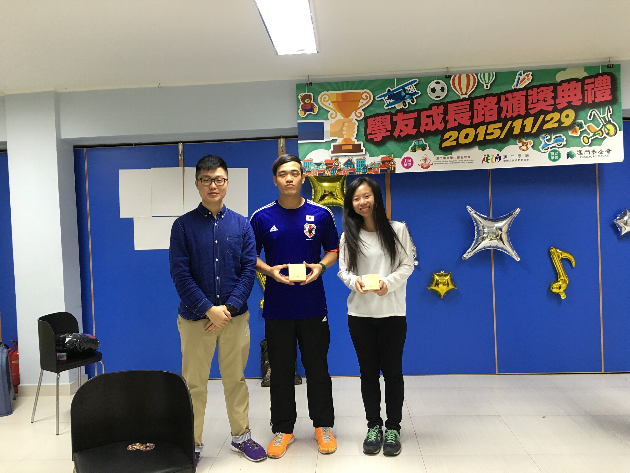 由澳門學聯—學聯之友活動委員會主辦、澳門基金會贊助的“YES計劃”已於日前全部順利完成。“YES計劃”為本年度新增的一項系列活動,包括“眾裡尋狼 X 桌遊千百度”、“泡泡足球大亂鬥”及“學友成長路頒獎典禮”三個活動。主要目的是希望透過委員自行設計及組織的活動,培養他們的組織及溝通能力,提升其成為領袖的潛力,並加強委員間的友誼。