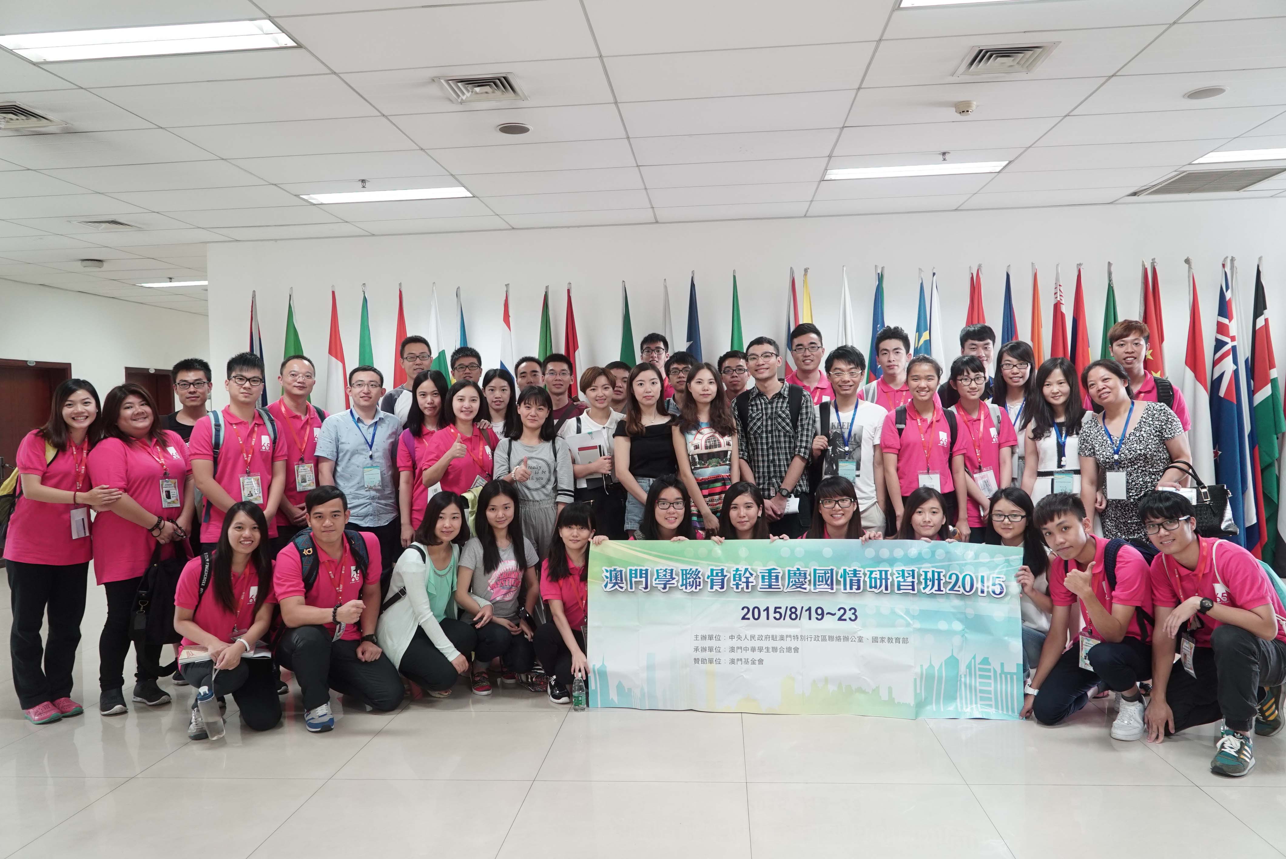 由澳門基金會贊助、澳門中華學生聯合總會承辦的「澳門學聯骨幹重慶國情研習班2015」已於八月二十三日圓滿結束。是次交流團組織了二十三名學聯骨幹前往重慶市進行學習、考察及交流活動。團員均表示為期五日的