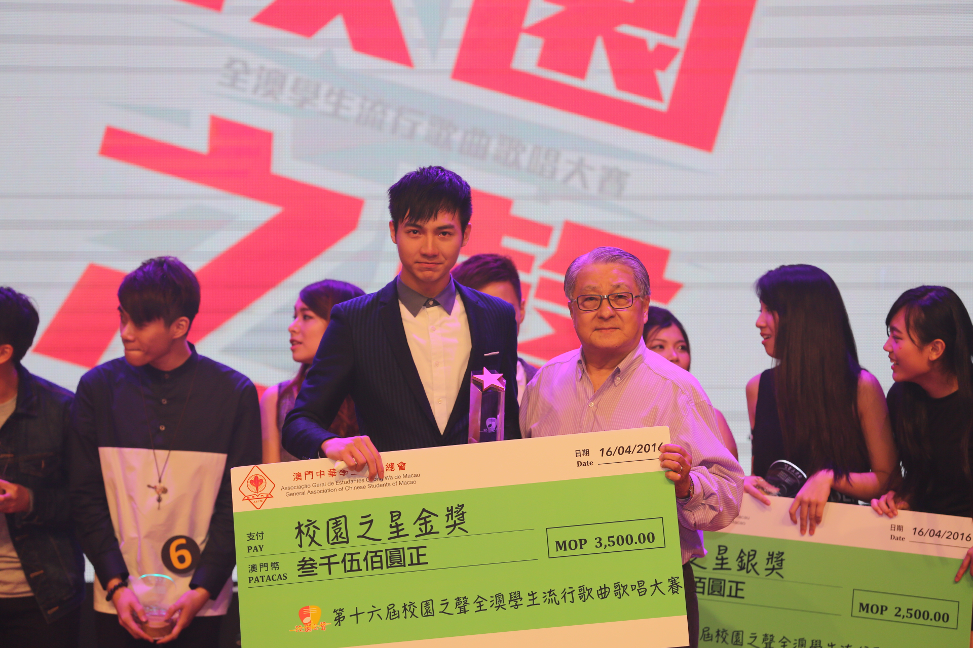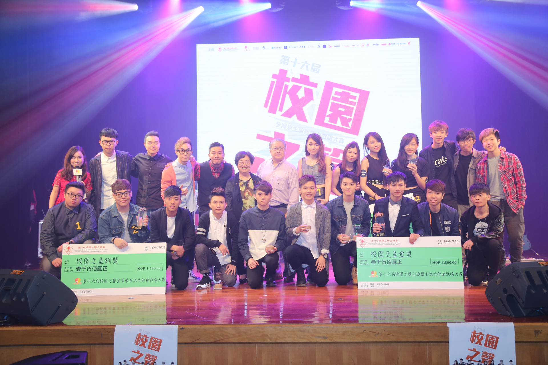 由澳門中華學生聯合總會主辦的「第十六屆校園之聲全澳學生流行歌曲歌唱大賽」已於日前假街坊總會藝駿中心圓滿結束。 是次活動十二強經過初賽及準決賽等甄選環節,獲得評審的肯定,從云云選手中脫穎而出。而決賽經過三個回合的歌技比拼,新一屆校園之星銅獎由聖若瑟大學的蔡國柱奪得,旅遊學院的藍守恩獲得銀獎,而來自澳門科技大學的張宇敏除奪得校園之星金獎外,還獨攬全場最受歡迎大獎及卓越舞台表現大獎,成為三料冠軍。 是次比賽邀請澳門歌手小肥,資深音樂人黃寶祥、陳潔玲,澳門歌唱導師趙倪生、澳門音樂人曾慶欣擔任評審,並由小肥、吳杭捷、Superme為觀眾帶來精彩表演,兩位歷屆得獎歌手廖偉龍及張可恩亦到場演唱「校園之聲」主題曲園外音》。