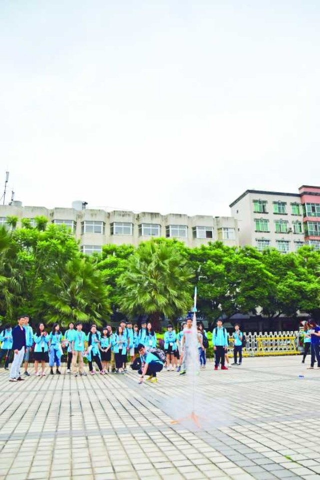 學生親自製作火藥推動模型火箭