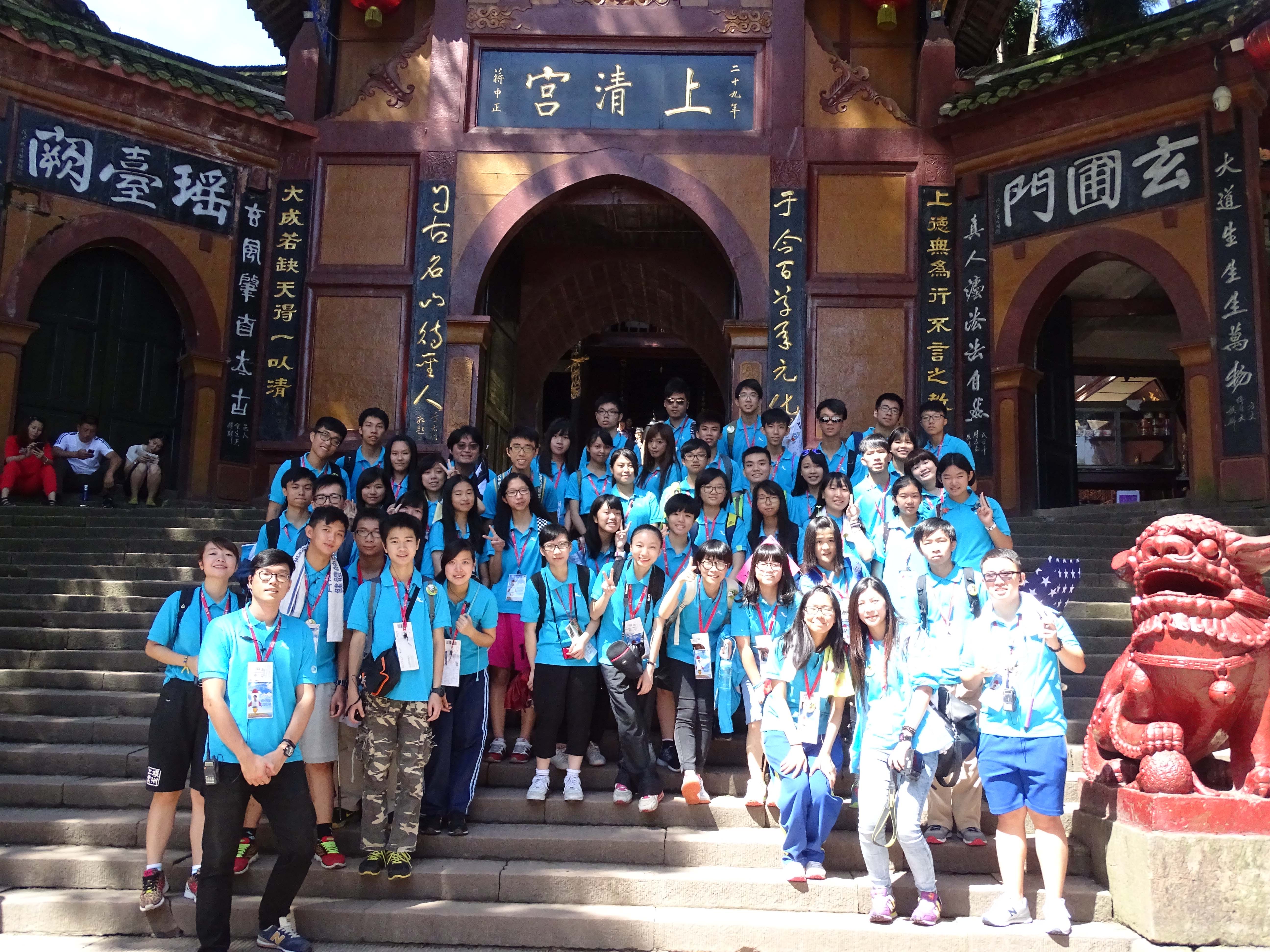 夏令營一行五十多人今日一早登上都江堰市西南的青城山,該山為中國道教發源地之一,屬道教名山,主峰老霄頂海拔一千六百米。又有“青城天下幽”之美譽,是國家重點風景名勝區,並於二○○○年被聯合國教科文組織列入世界遺產名錄。