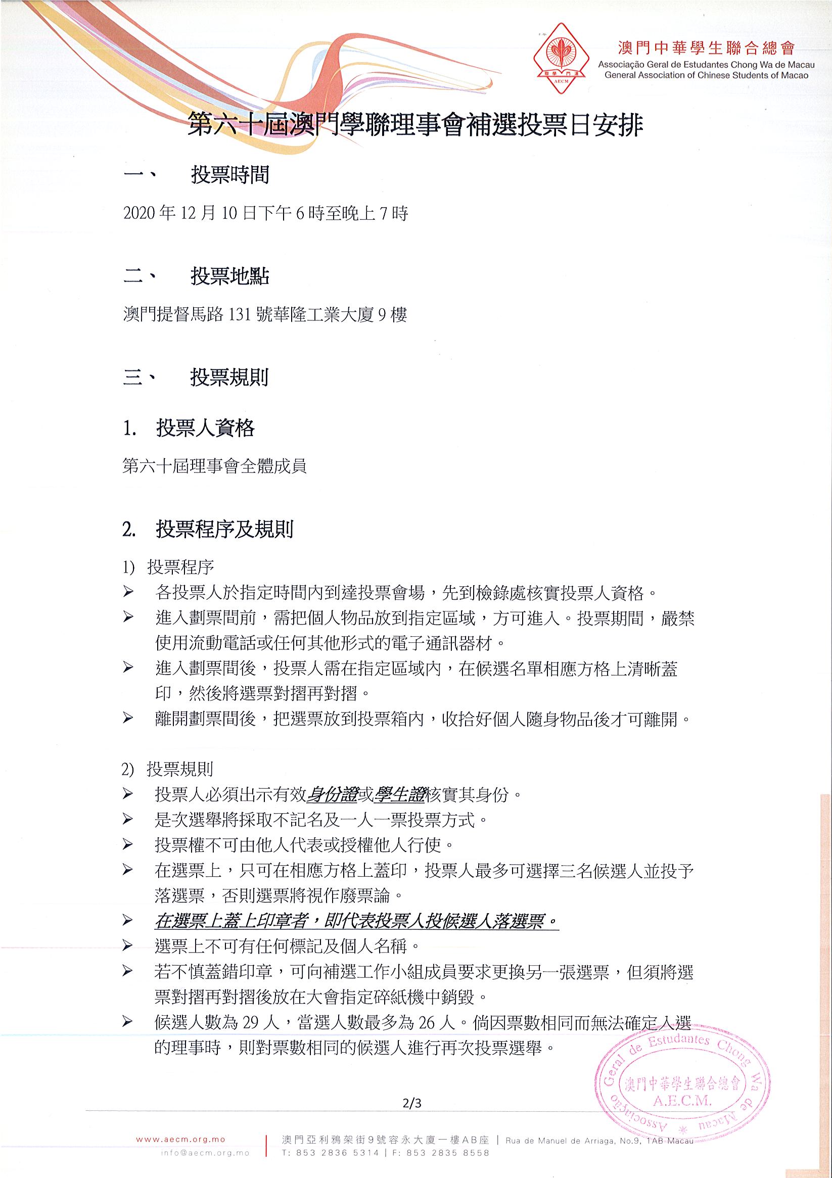 2第六十屆澳門學聯理事會補選投票日安排