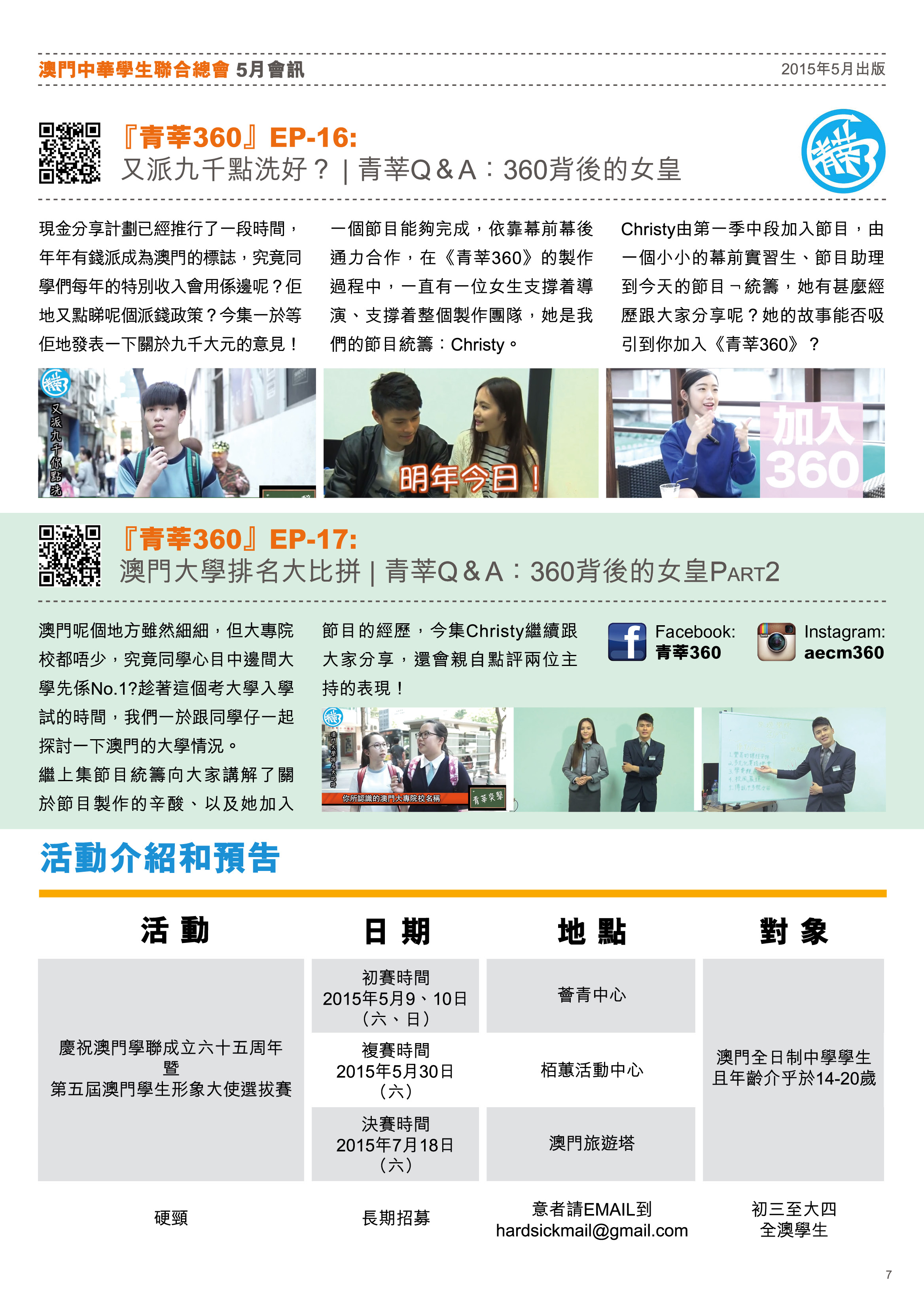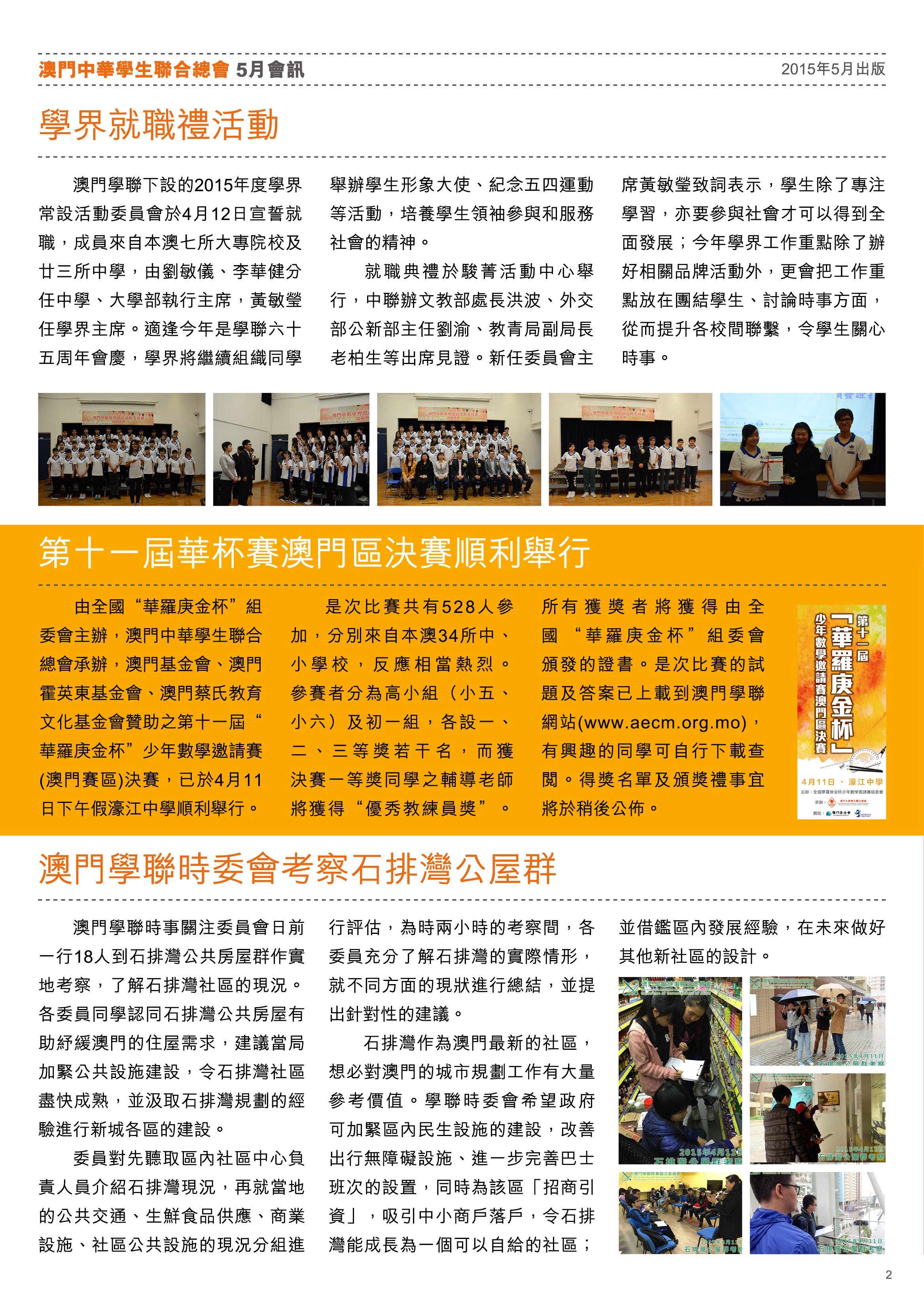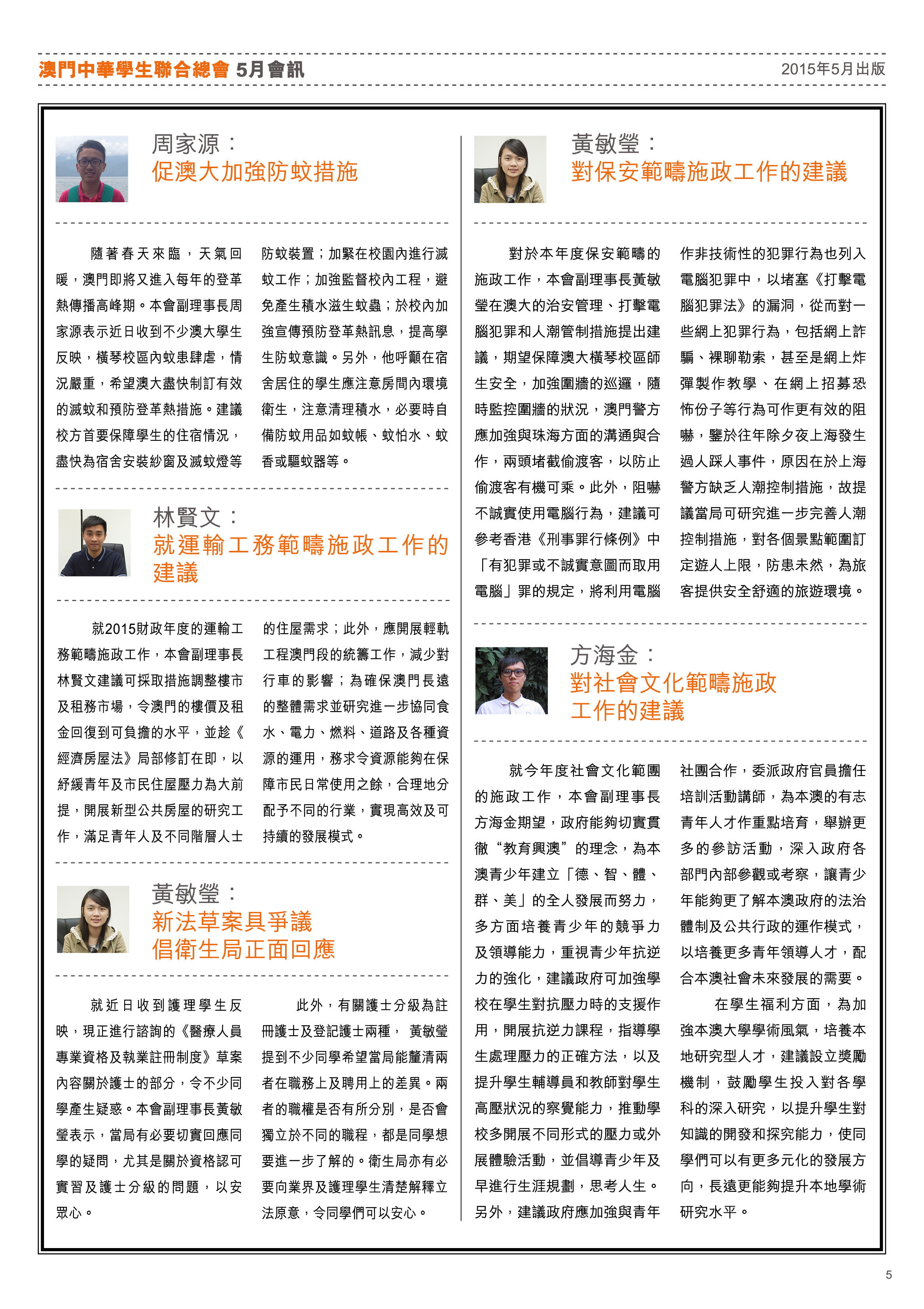 五月會訊 ReadMore 2026年4月會訊 2026-04-16 2026年3月會訊 2026-03-24 2026年2月會訊 2026-02-14 Tweet 微信 Whatsapp 更多會員活動 2026年4月會訊 查看 【會員福利】2026會員推薦「積」有禮 查看 2026年3月會訊 查看 【會員小貼士】學聯會員登入平台操作5步曲 查看 【學聯會員有咩著數】 查看 【推介】加個好友吧 查看 分類出版, 會訊 發佈2015-05-14 微信 Whatsapp 焦點活動 Hot 澳門學聯七十五載愛國之路特刊 2025-04-30 【宣傳片】第二屆澳門青年國際禁毒大使培訓計劃 2026-01-09 【推介】2025/2026升學秘笈 2025-05-09 【形TV】〖校園狗仔隊〗EP64. 全運會空手道金牌得主:容君灝 澳門中華學生聯合總會