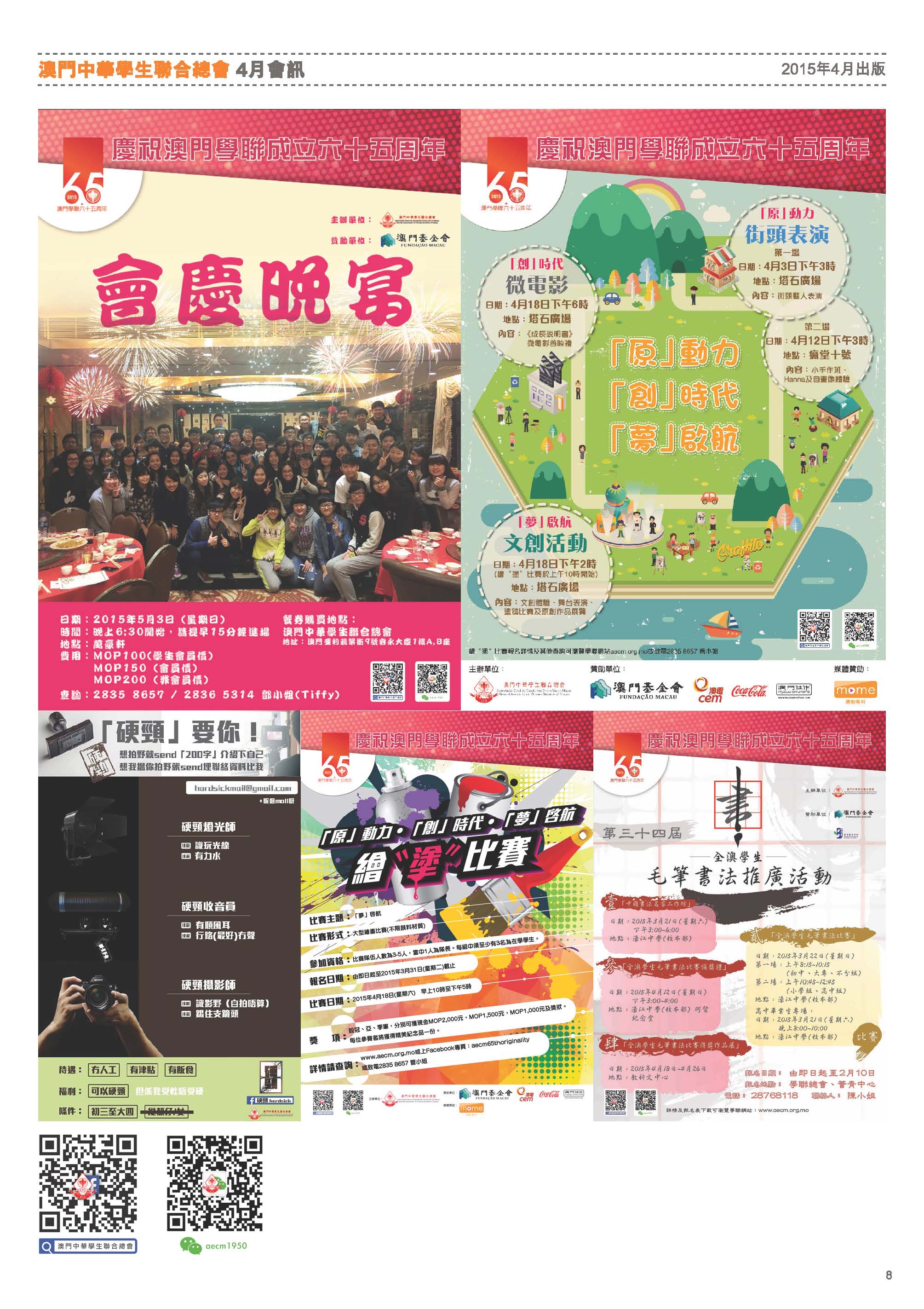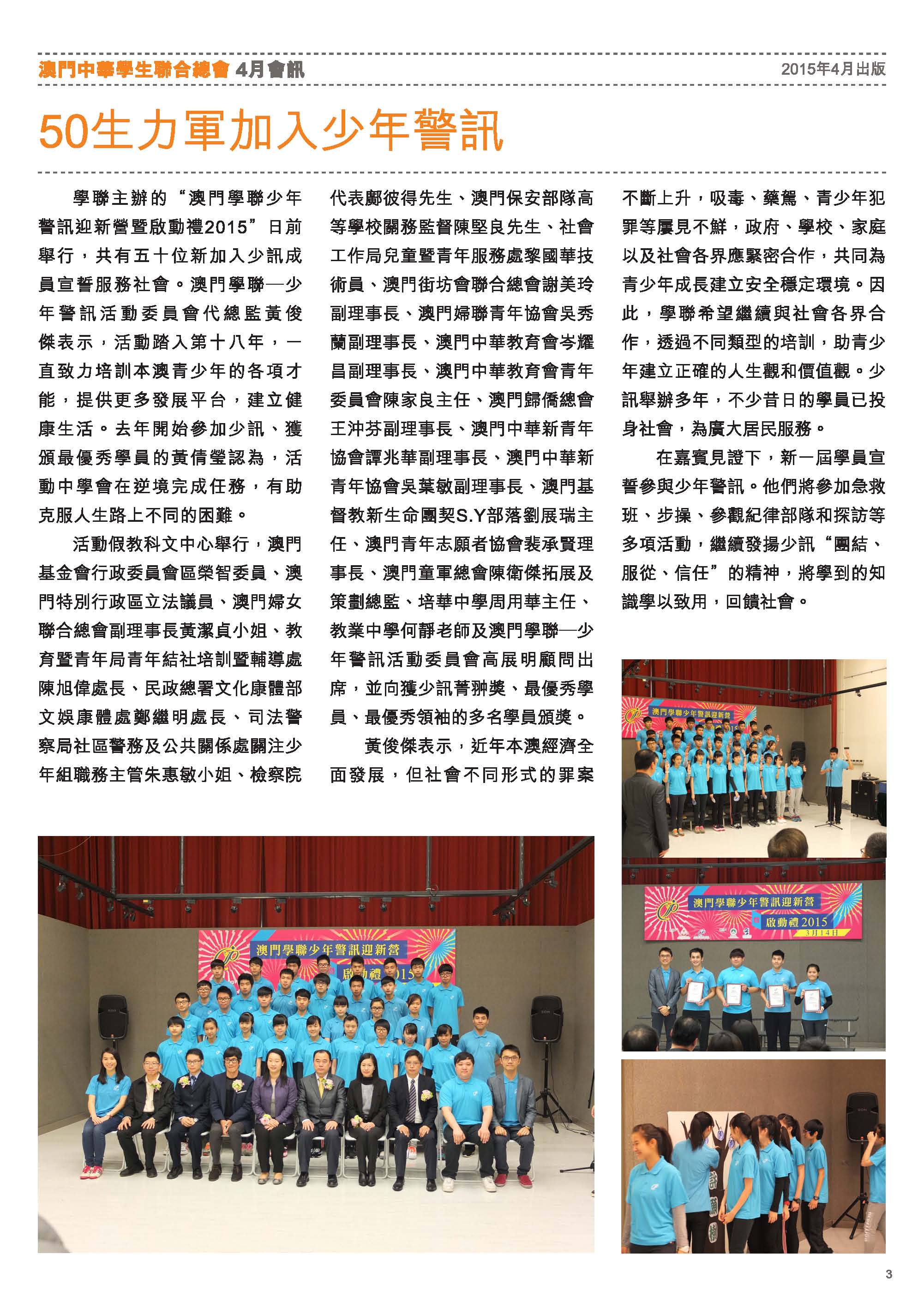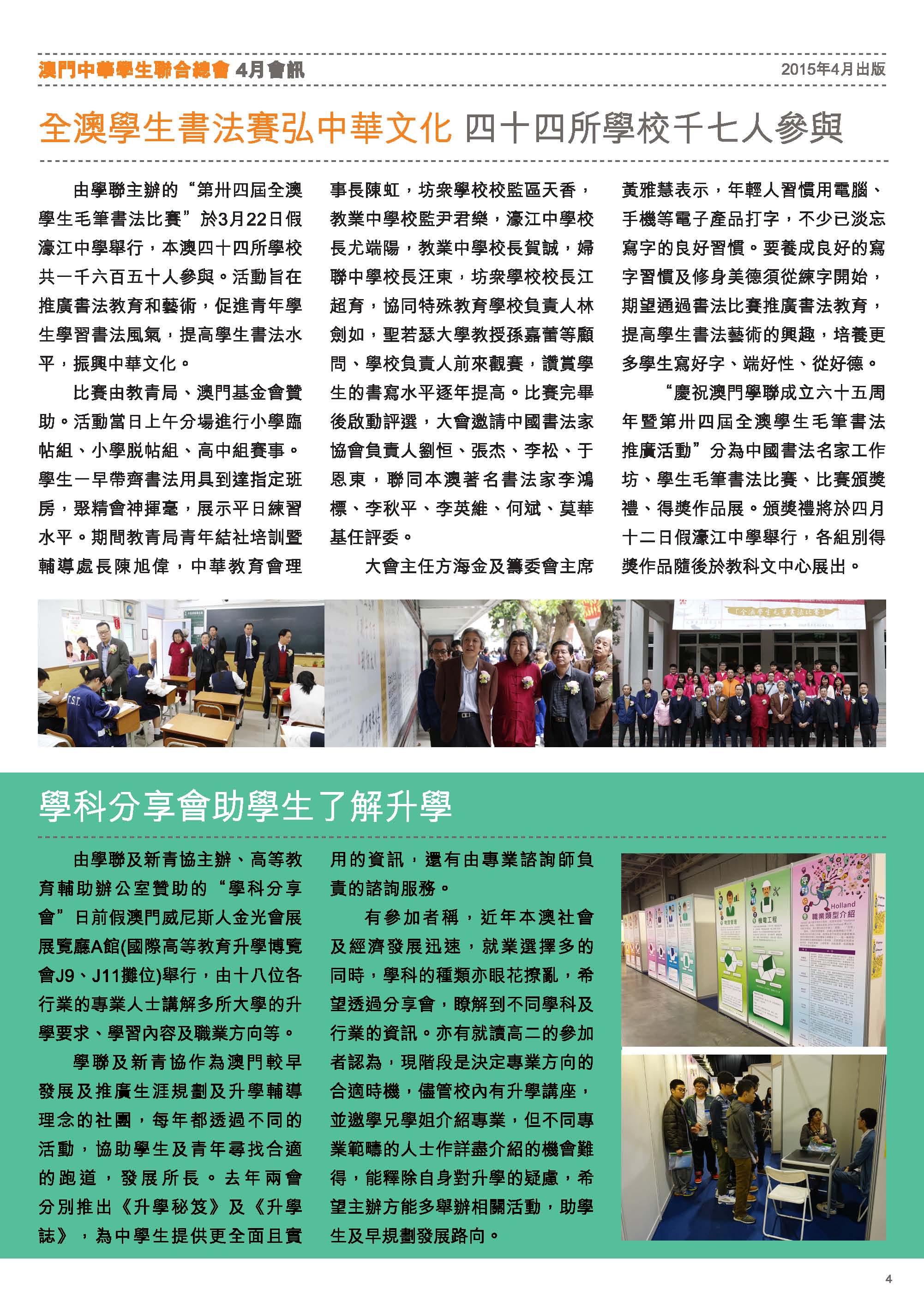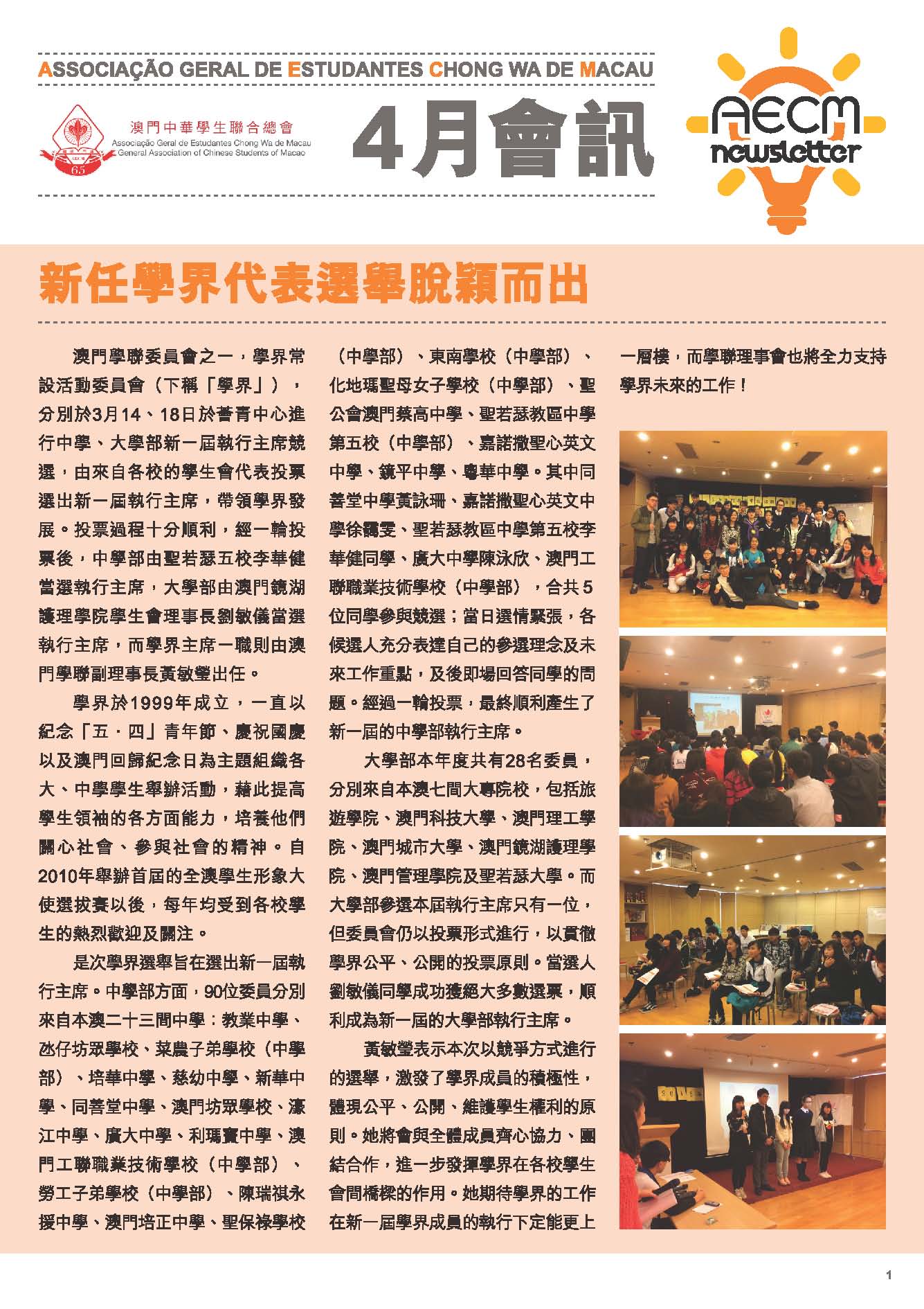 四月會訊 ReadMore 2026年4月會訊 2026-04-16 2026年3月會訊 2026-03-24 2026年2月會訊 2026-02-14 Tweet 微信 Whatsapp 更多會員活動 2026年4月會訊 查看 【會員福利】2026會員推薦「積」有禮 查看 2026年3月會訊 查看 【會員小貼士】學聯會員登入平台操作5步曲 查看 【學聯會員有咩著數】 查看 【推介】加個好友吧 查看 分類出版, 會訊 發佈2015-04-02 微信 Whatsapp 焦點活動 Hot 澳門學聯七十五載愛國之路特刊 2025-04-30 【宣傳片】第二屆澳門青年國際禁毒大使培訓計劃 2026-01-09 【推介】2025/2026升學秘笈 2025-05-09 【形TV】〖校園狗仔隊〗EP64. 全運會空手道金牌得主:容君灝 澳門中華學生聯合總會