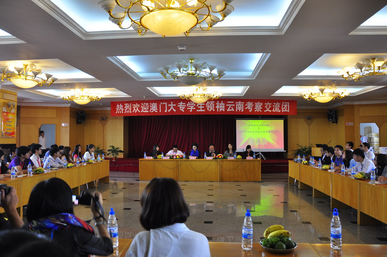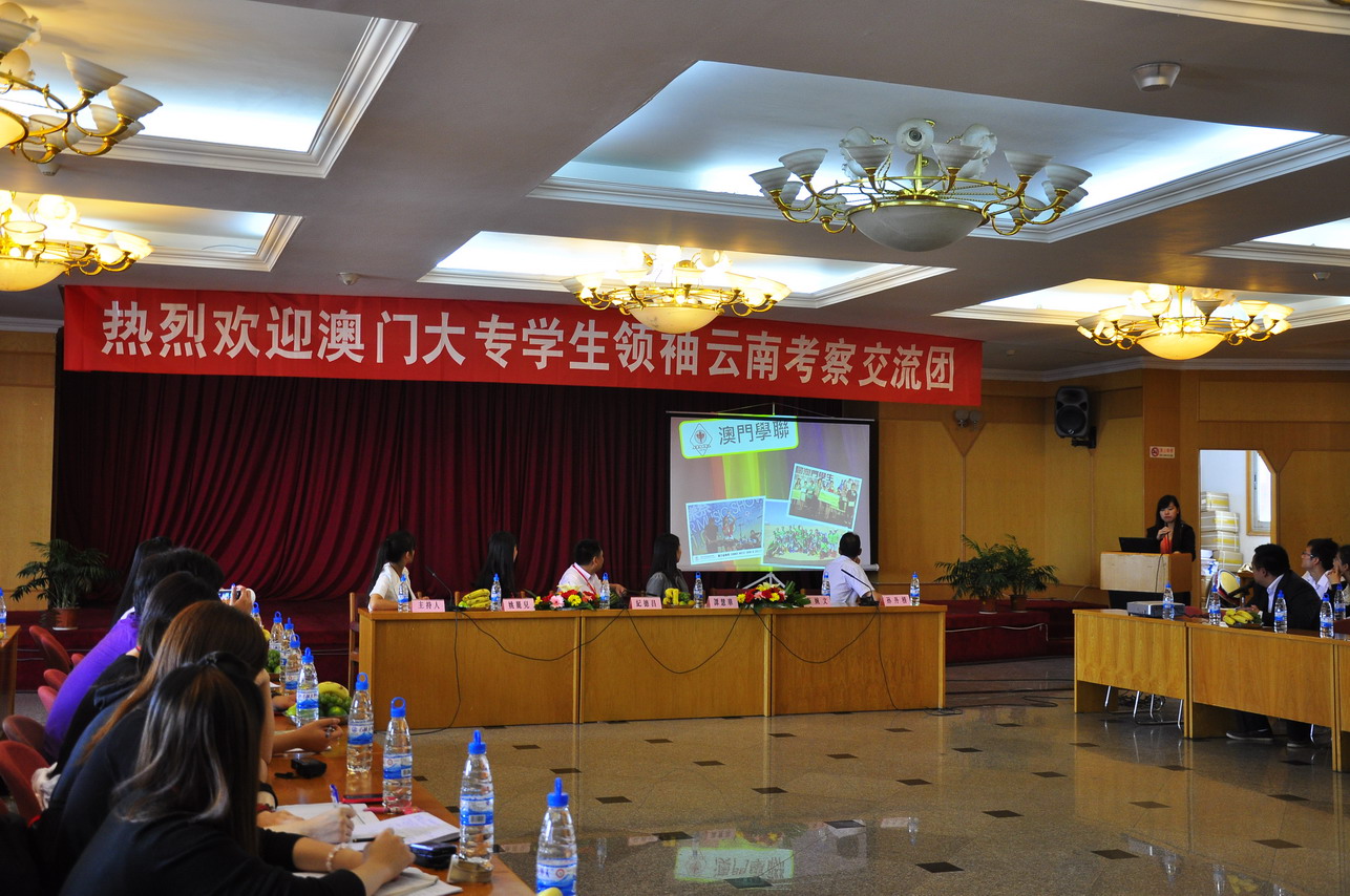在五日四夜的旅程中,遊學團到訪雲南省學聯,受到雲南省共青團省委書記饒南湖及副書記楊金瑩熱烈歡迎,饒書記向大家簡介雲南省地理、少數民族等情況,楊副書記祝願遊學團安心、開心及修心。雲南省學聯孫丹榜副秘書長介紹省學聯架構及活動情況,團員對雲南省學聯的情況非常感興趣,紛紛踴躍提問,交流氣氛熱烈。晚上,遊學團受到接待單位雲南大學設宴招待,團員以歌會友,向雲南大學師生們獻唱《一個神奇的地方》,祝願雲澳兩地一同向世界飛揚,氣氛高漲。團員表示,與雲南大學的學生交流後,有感自身在澳門得到很多資源,但是競爭力卻沒有比內地學生強,只滿足於自身的幸運之中,而內地的同學卻是不斷挑戰自己,向自己的夢想昂首闊步,認為這一點是非常值得學習。