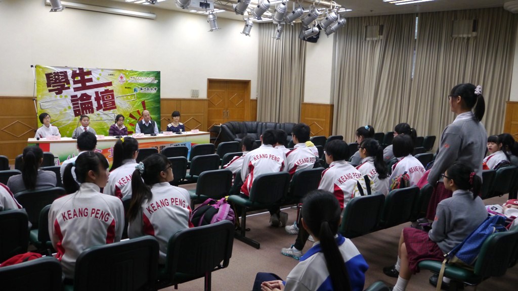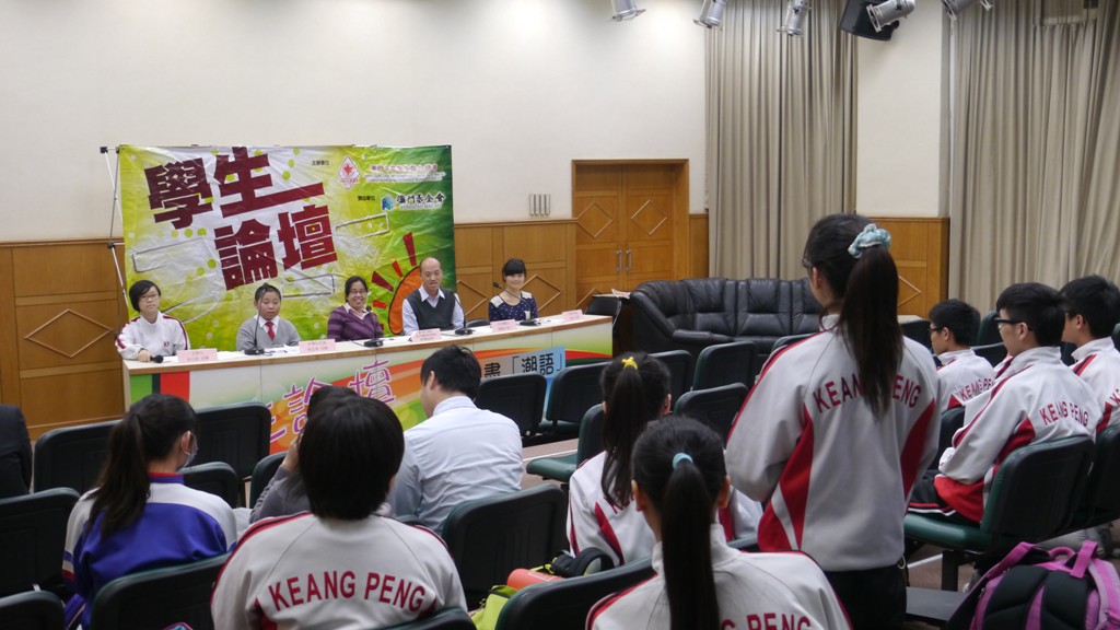 學生論壇-「論盡」潮語早前於鏡平學校中學部舉行,邀請學者嘉賓與學生暢談“潮語”(潮流用語),活動邀請了理工學院語言暨翻譯高等學校湯翠蘭副教授、自由撰稿人黃健威博士、大學生代表王昳星、中學生代表柯志華主講,與出席的中學生就“潮語”作互動交流。
