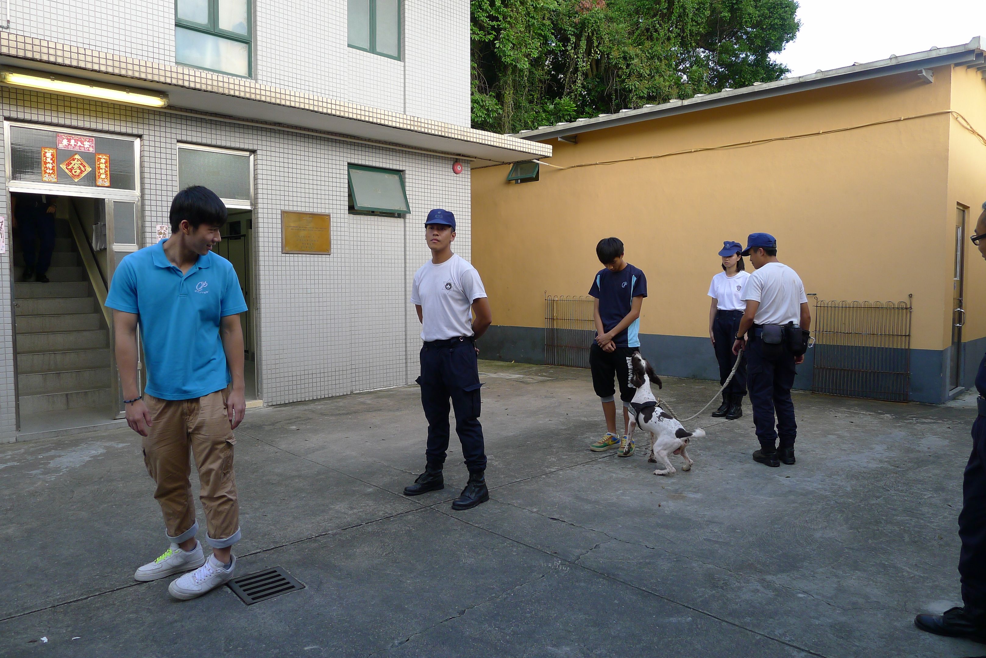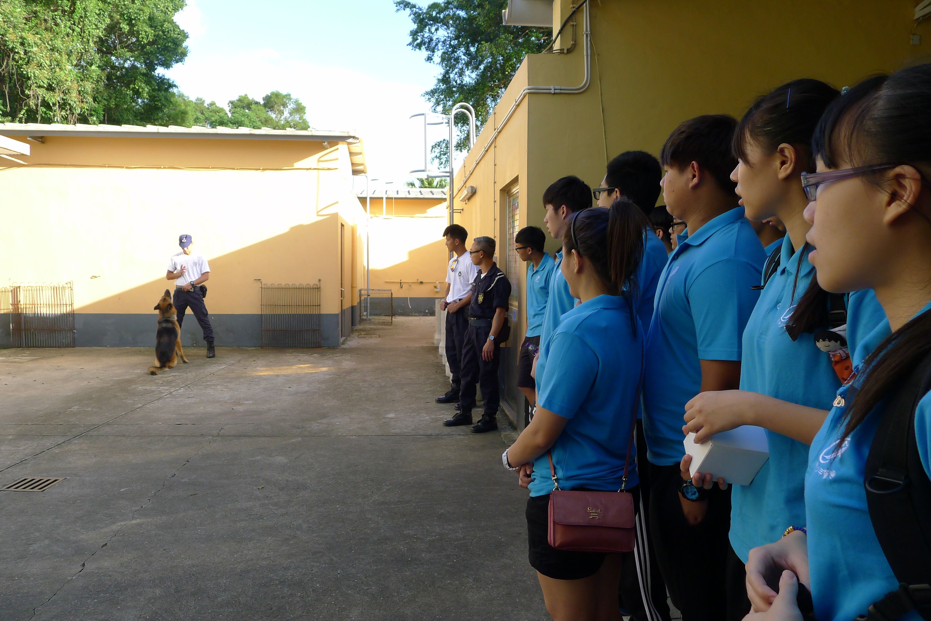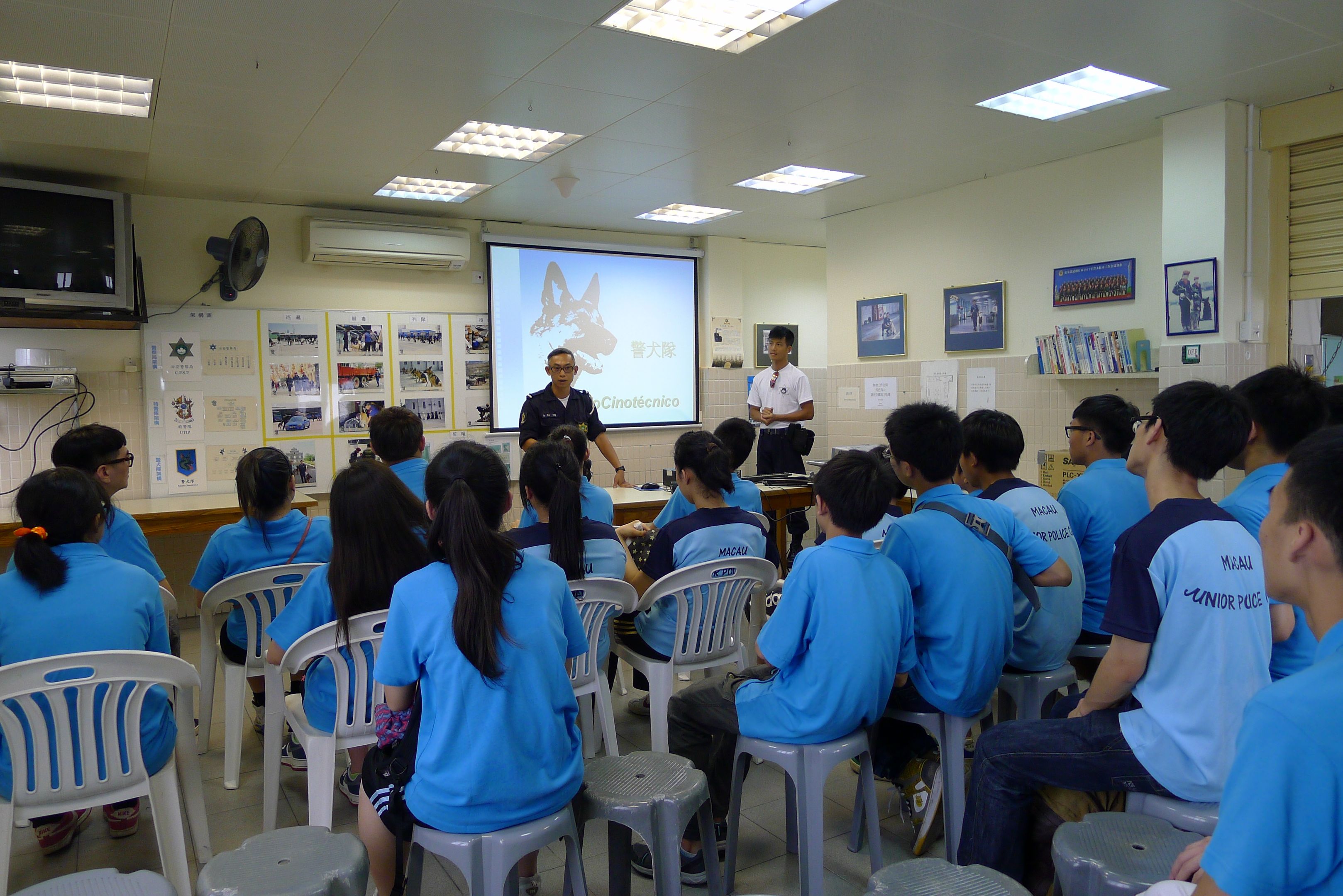 ____活動當日,少訊學員一行二十多人到路環石街特警警犬隊參觀,了解警犬隊的日常工作以及對警犬的各種訓練等,並由警犬示範緝毒、服從訓練等技能,最後,為了令他們能深入了解警務人員的日常工作,特警警犬隊更安排學員們觀看《警察故事》,短片講述五個本澳曾發生的案件經過,透過現職警務人員親身說法,講解本澳警務人員在維護社會治安、保護市民所肩負的責任和義務。