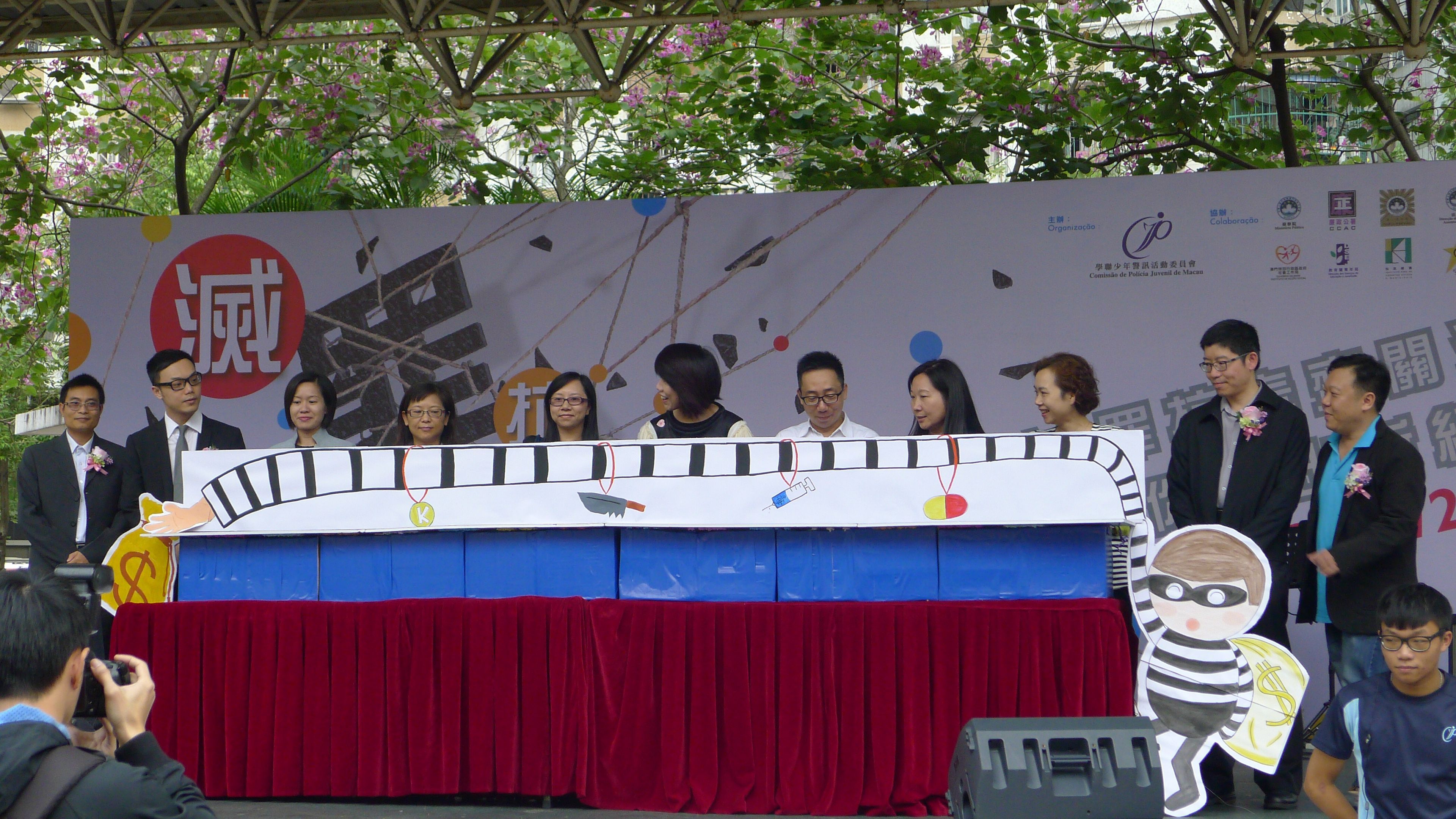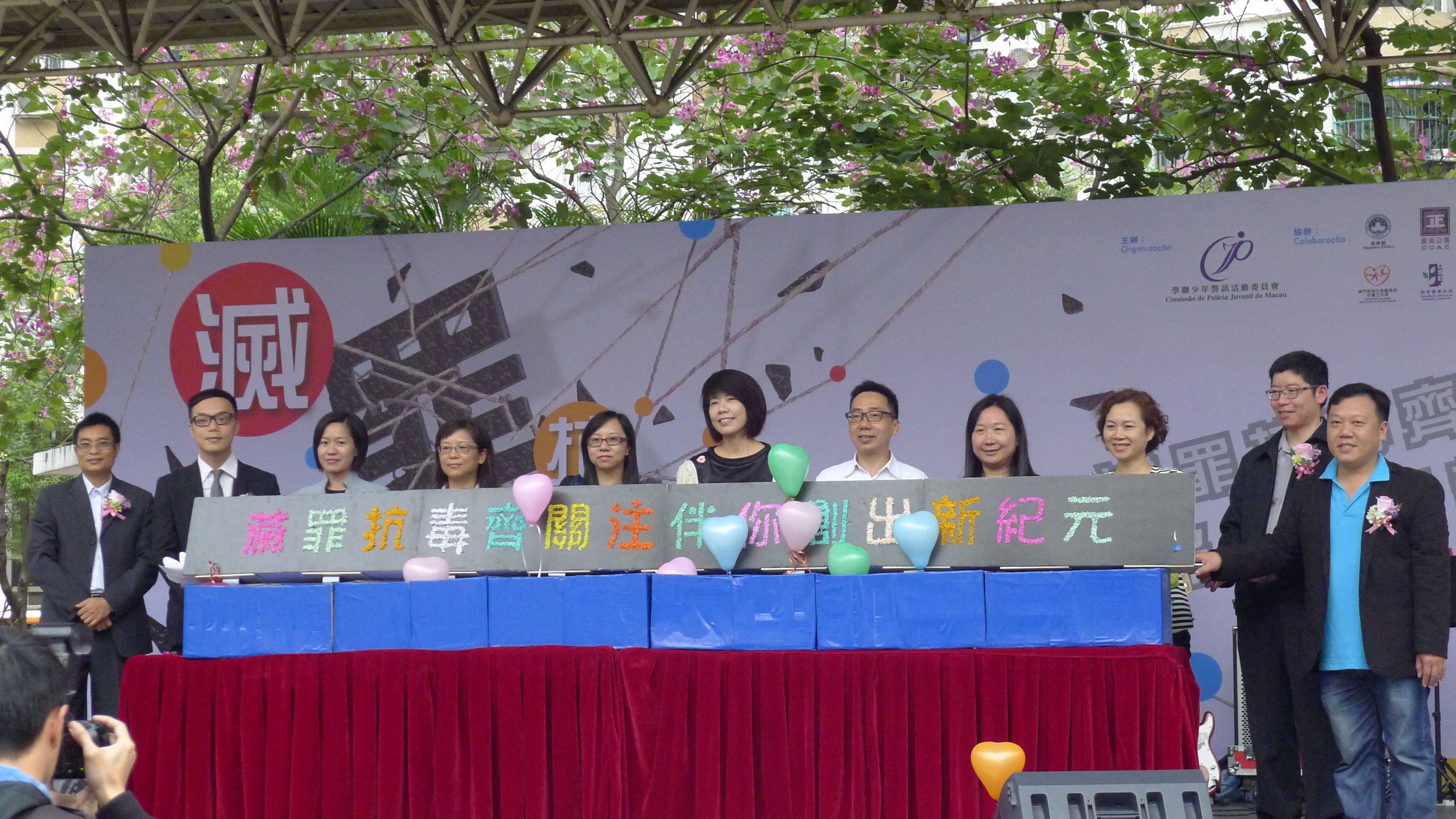 活動昨日下午四時在祐漢公園廣場舉行,以“滅罪抗毒齊關注、伴你創出新紀元”為主題。社會文化司司長辦公室顧問何麗鑽,檢察院司法合作廳代廳長余琴,澳門基金會資助暨合作廳長黃棣樂,民政總署公民教育及資訊處長林微笑,教青局黑沙環青年活動中心主任薛鳳翹等嘉賓主持開幕式。