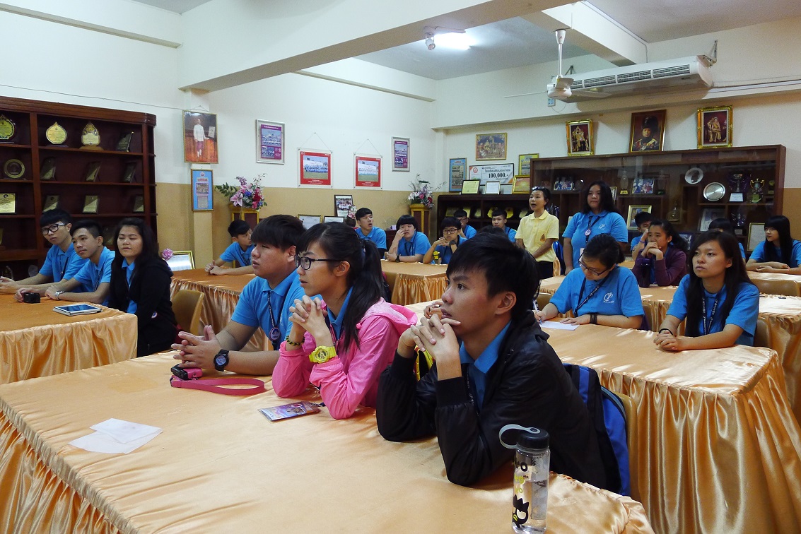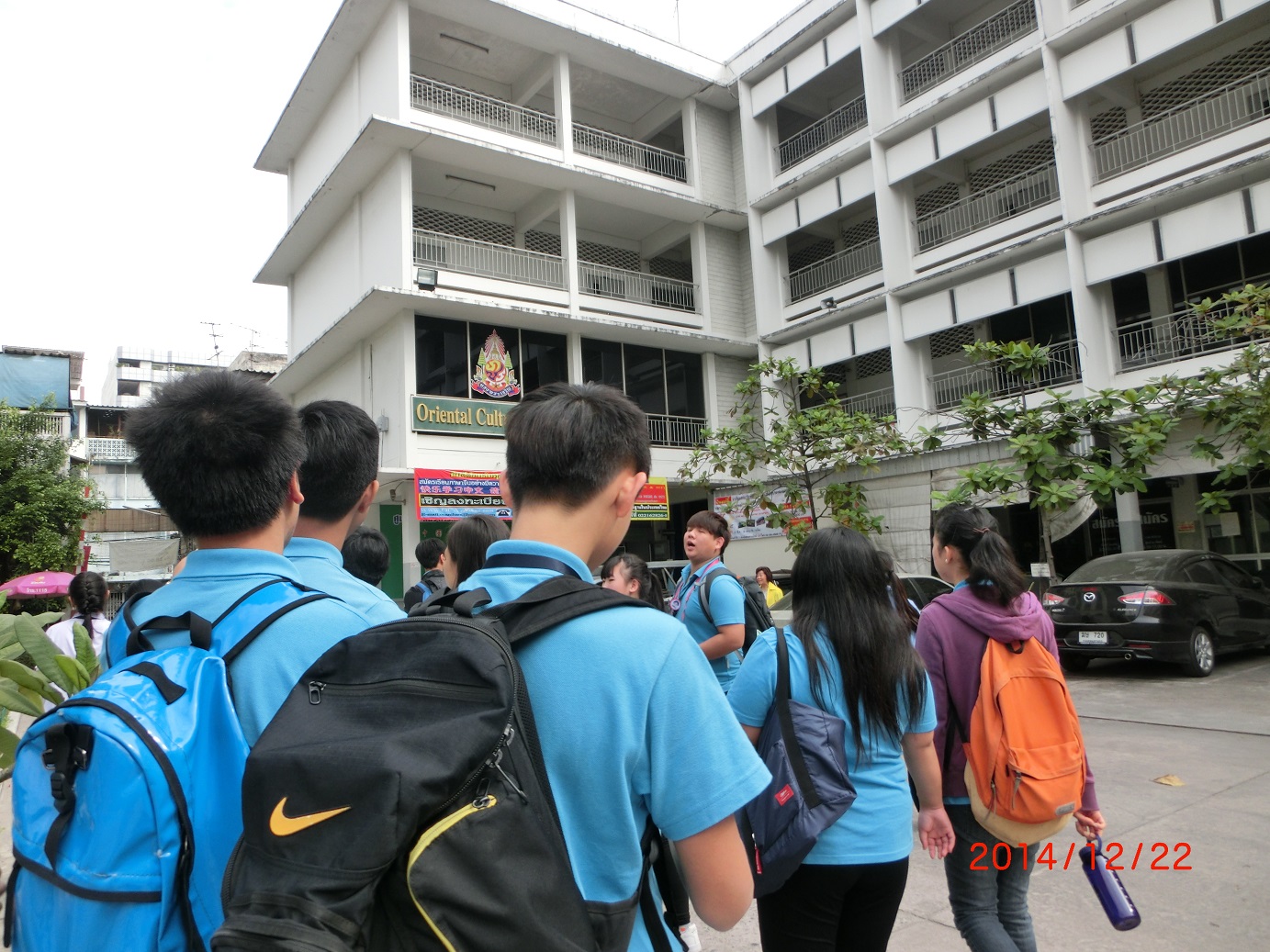 交流團於行程第三天到訪曼谷華教促進會—時代中學,由何韻主席帶領下,與當地師生交流學習、社會、文化及生活狀況。拜訪活動首先由時代中學的學生代表帶領團員參觀學校建築,包括榮譽室、中文活動室、泰文電腦室等地方,參觀期間團員與當地學生代表相處甚歡,就兩地語言學習情況、生活狀況、社會風氣、身份種族等方面進行交談,促進團員增進對泰藉華僑生活的認知,之後彼此更交換聯絡方式。到達漢語網絡考試考點的孔子課堂後,認識漢語文化在泰國的傳播狀況。雙方學生就兩地教育制度、文化異同、教育環境等話題,展開一系列深入對話,最後雙方更在東方文化書院進行合影。
