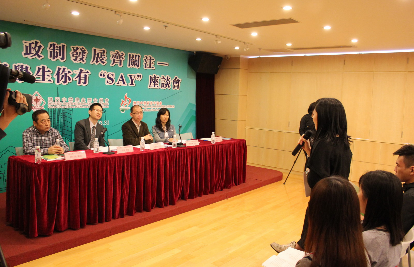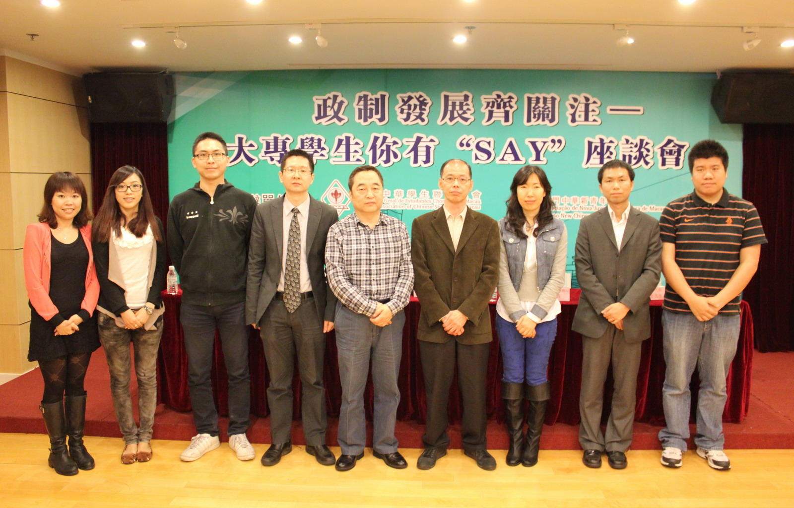學聯與新青協於日前合辦“政制發展齊關注——大專學生你有SAY”座談會,邀請行政公職局局長朱偉幹、法律改革及國際法事務局局長朱琳琳、行政法務司司長辦公室顧問趙向陽、理工學院一國兩制研究中心主任王禹及法務局代表蔣永恆出席,與本澳大專學生就政制發展作互動交流。