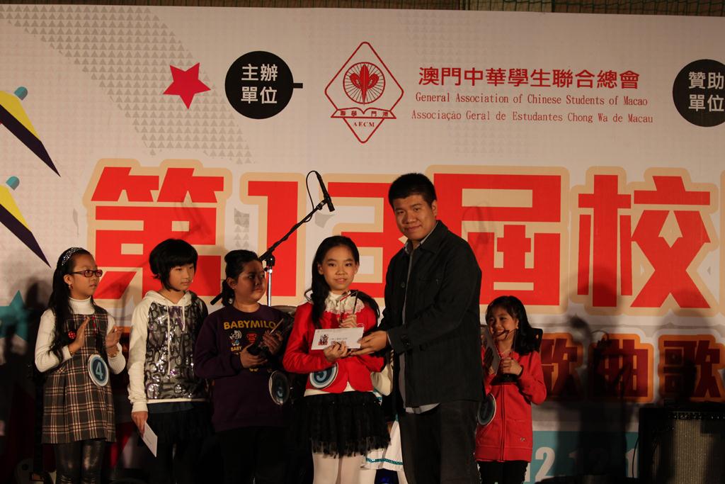 由澳門中華學生聯合總會主辦的「第十三屆校園之聲全澳學生流行歌曲歌唱大賽」已於十二月一日晚假工人體育館A館圓滿結束。決賽當晚競爭激烈,最後由校園之聲組由黃家琪奪金獎,小學之聲組由林鳳欣奪金獎。