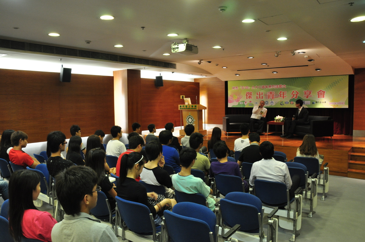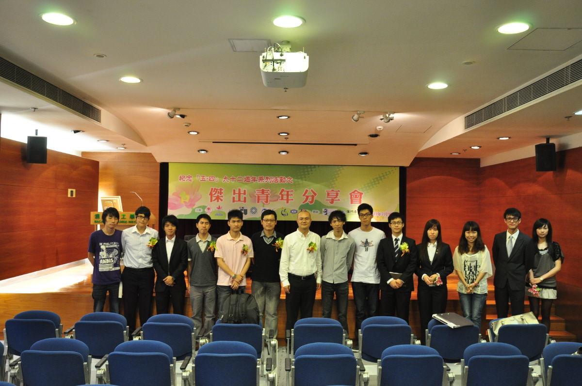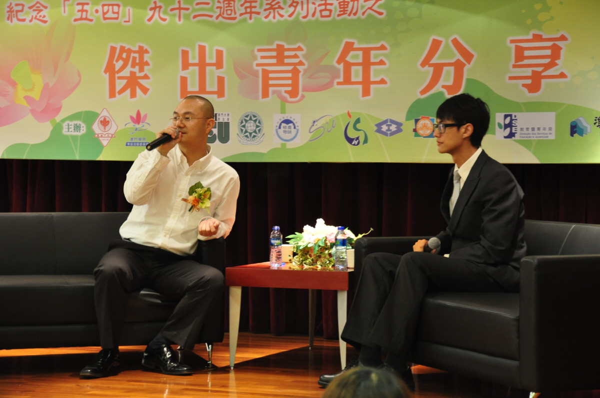 由澳門中華學生聯合總會澳門學界常設委員會大學部主辦的“紀念「五‧四」九十二週年系列活動之傑出青年分享會”於七月九日假理工學院三號演講廳進行,分享會分兩部份進行,第一部份透過主持與澳門中華青年進步協會會長施家倫先生的互動對話,施家倫以其個人心路歷程及見解,勉勵參加者自強不息,勇於嘗試,分享過後更有問答環節解答同學不同的問題;第二部份為茶聚時間,在輕鬆的茶聚上,參加者面對面與施家倫交流心得,分享個人見解及向他成功的社團工作經驗取經。