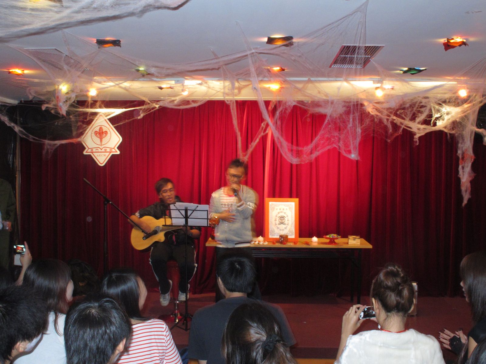 通過活動籌委的精心策劃,薈青中心佈置成充滿驚嚇的場地,中心內的電玩室,KTV演唱室、錄音室及洗手間等都佈置了富有節日氣氛的裝飾,務求讓參加者體驗薈青的“另一面”。 參加者到場時需要在“死亡錄”簽名報到及分批進入“鬼屋”,並在黑暗的燈光及工作人員的埋伏下完成特定的任務,現場氣氛緊張刺激,在玩鬼屋遊戲過程中更不時傳出尖叫聲。今年活動主題為“萬聖回魂夜”,現場亦因此擺放多款特色的中式食品,如“鬼舔舔叉燒飯”、“香腸蠟燭”、“盲婆果汁”等創意食品,大受參加者歡迎,而且大家精心打扮,各種身穿著中式服裝的“遊魂野鬼”佈滿全場,為活動主題增添不少色彩。活動尾聲的表演節目“吉他演唱”及“魔術表演”,眾多參加者與表演嘉賓一同合唱更將氣氛推至最高潮。