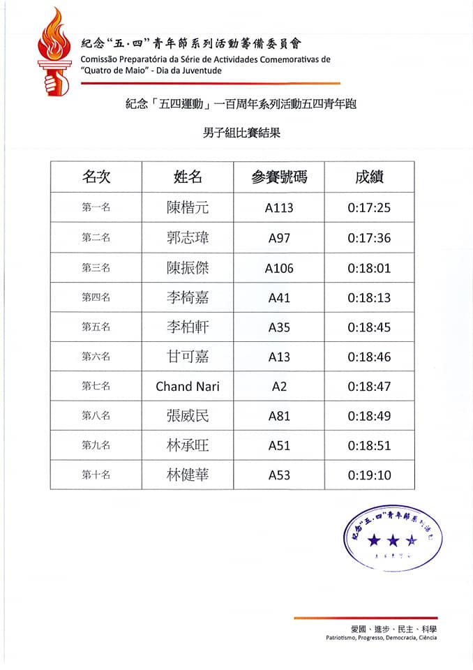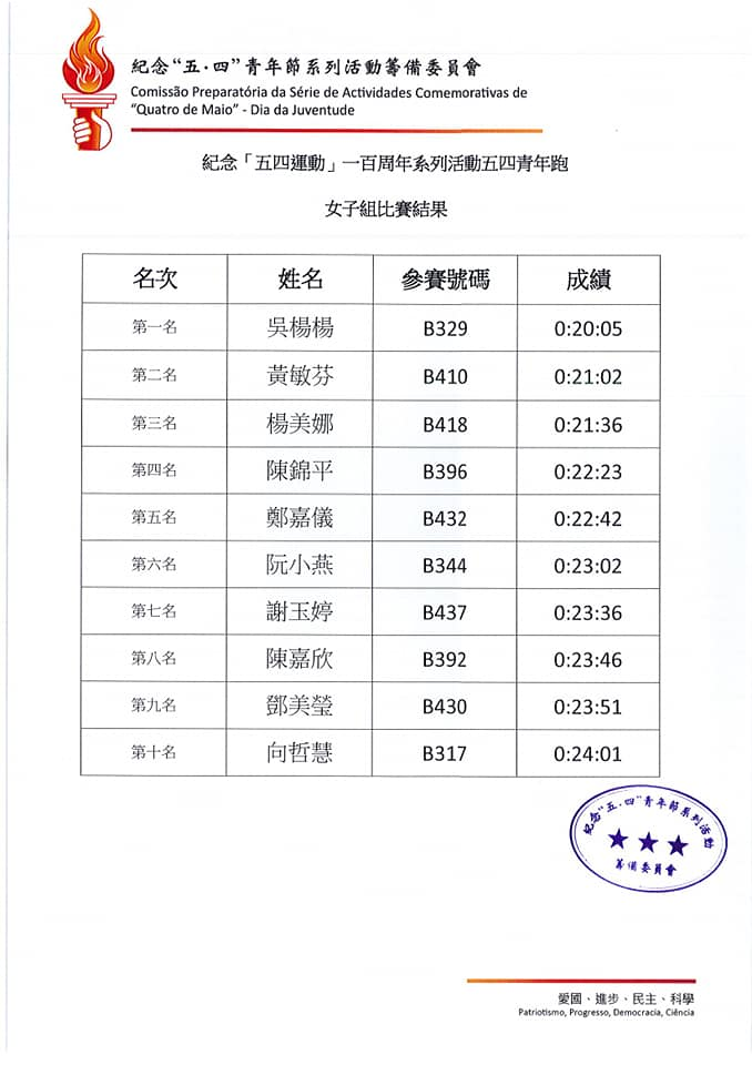 - 凡報名之參賽者即表示同意遵守紀念「五四運動」一百周年系列活動之「五四青年 跑」章程內所載的各項規定並遵守紀律。