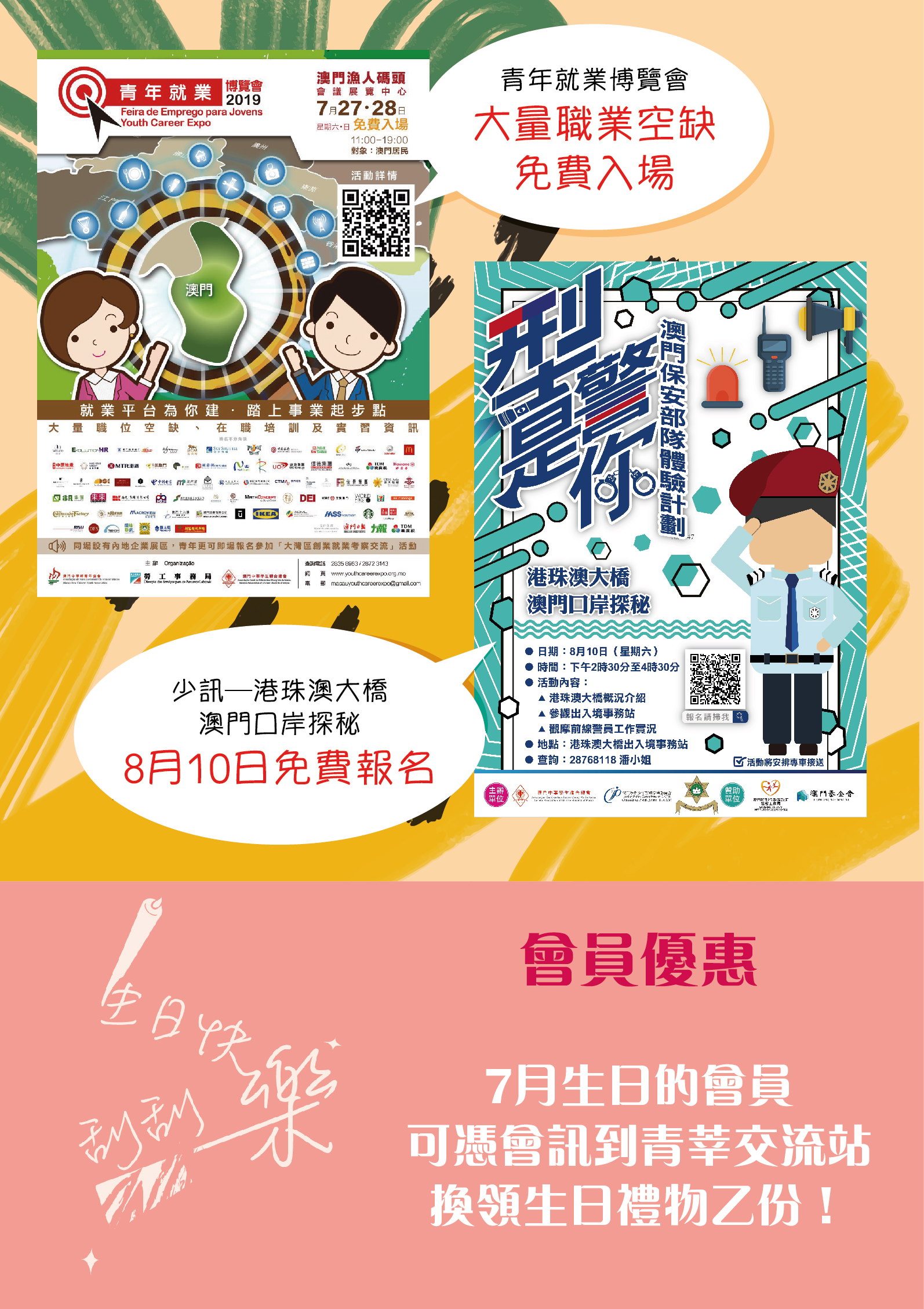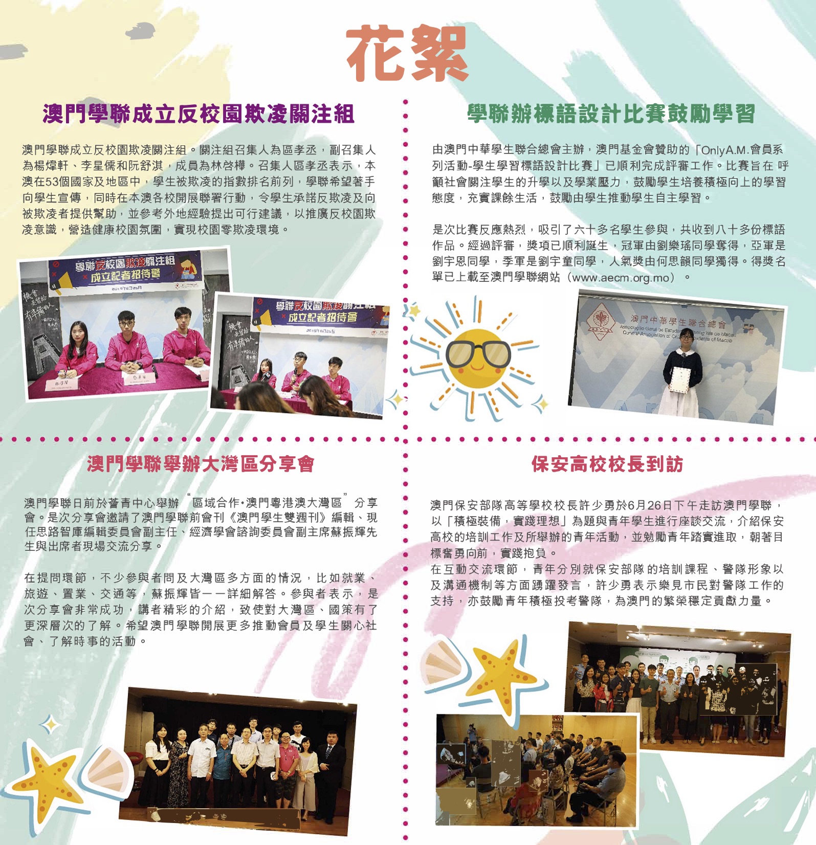 2019年7月會訊 ReadMore 2026年4月會訊 2026-04-16 2026年3月會訊 2026-03-24 2026年2月會訊 2026-02-14 Tweet 微信 Whatsapp 更多會員活動 2026年4月會訊 查看 【會員福利】2026會員推薦「積」有禮 查看 2026年3月會訊 查看 【會員小貼士】學聯會員登入平台操作5步曲 查看 【學聯會員有咩著數】 查看 【推介】加個好友吧 查看 分類出版, 會訊 發佈2019-07-25 微信 Whatsapp 焦點活動 Hot 澳門學聯七十五載愛國之路特刊 2025-04-30 【宣傳片】第二屆澳門青年國際禁毒大使培訓計劃 2026-01-09 【推介】2025/2026升學秘笈 2025-05-09 【形TV】〖校園狗仔隊〗EP64. 全運會空手道金牌得主:容君灝 澳門中華學生聯合總會
