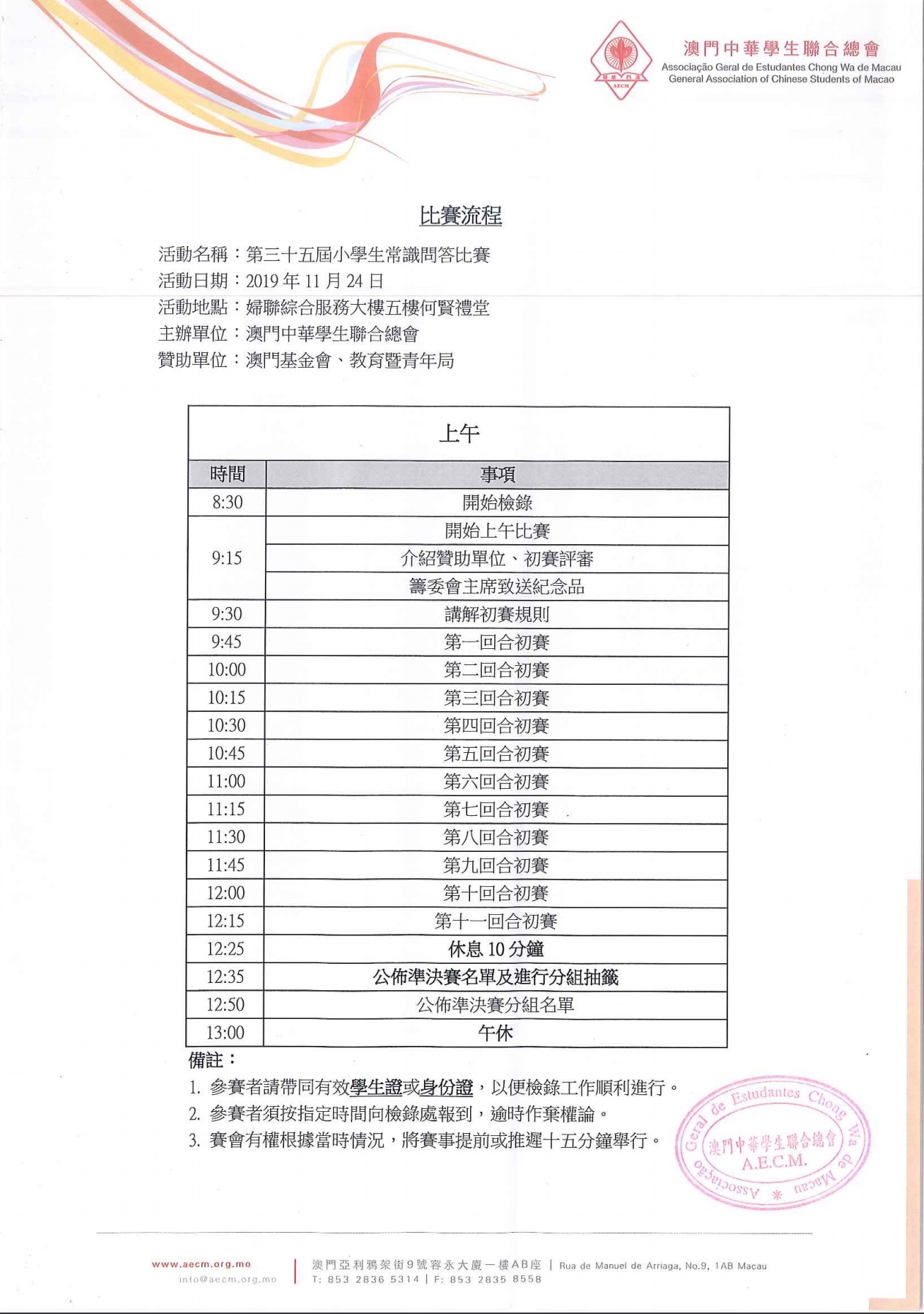 比賽內容:包括小學中、英、數、常識內容及澳門資訊題。
